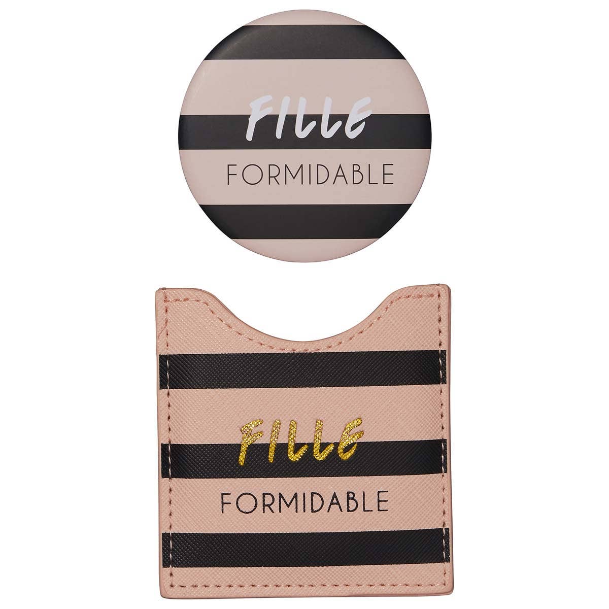 Rund spegel som förvaras i en praktisk ficka. Tryckt med ett snyggt mönster. Tillverkad i tvättbart plastmaterial.