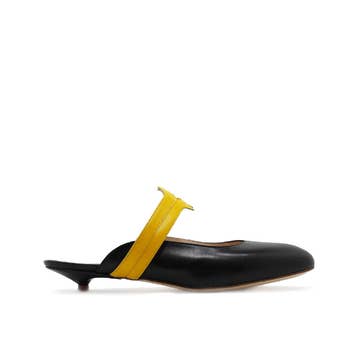 * Läderöverdel och insida * Justerbar spänne * Kontrasterande rosafärgad blockklack * Fyrkantig tå * Mjuka vadderade innersulor * 1-tums blockklack * Designad i London * Handgjord i Europa