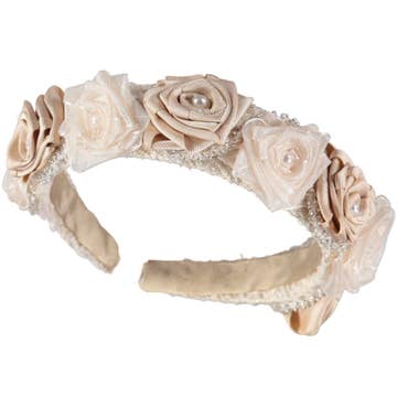 1" hårt pannband insvept i kvalitets grosgrain band och slutade med vår Rachel rosett. Mått: 8 x 6 x 3 W.