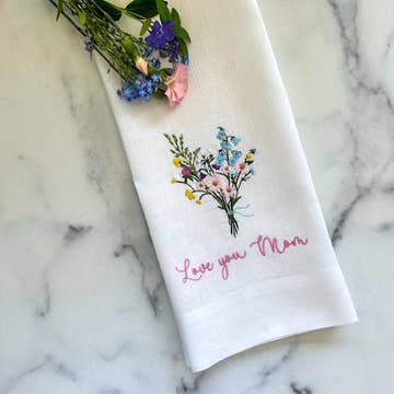 Klä upp köket eller badrummet med denna vackra handduk i 100% linne med broderi. Så många sätt att tillföra skönhet till vilken del av ditt hem som helst. Maskintvätta och stryk platt för en skarp look. Mått 17"x29".
