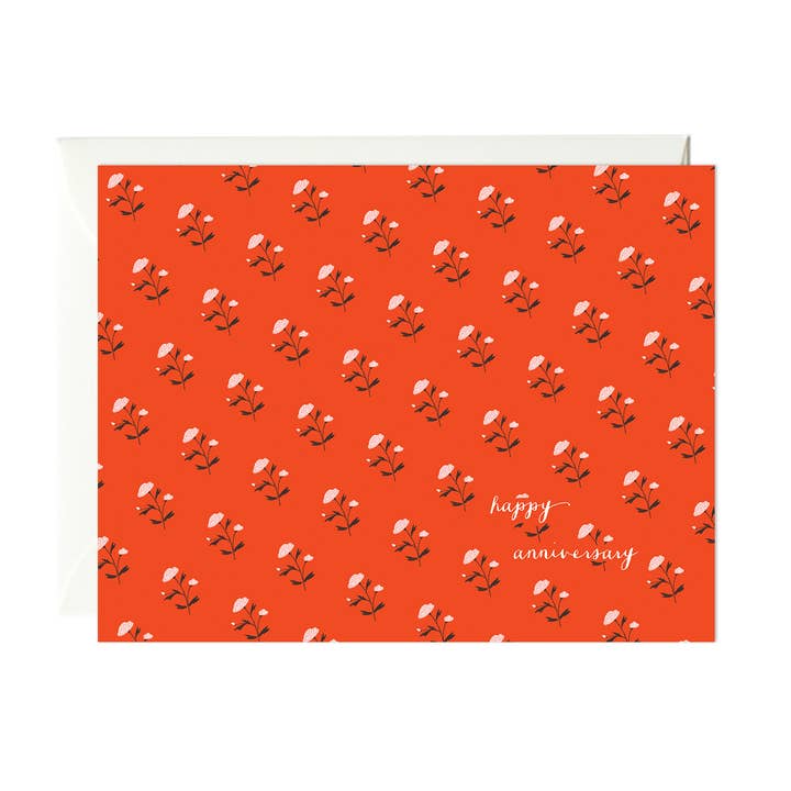 A2-kort (4,25 tum x 5,5 tum). Blank inuti. Tryckt på naturvit kartong och individuellt förpackad med ett matchande kuvert i en genomskinlig plasthylsa.