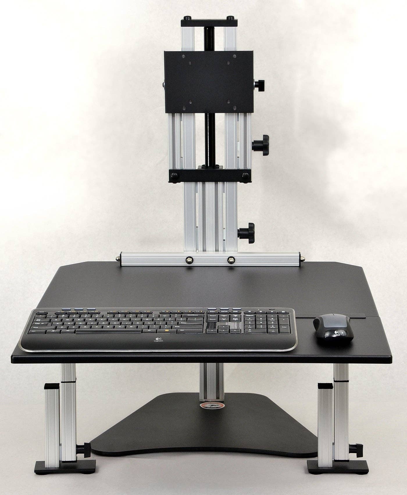 Vår Känguru Tri-Elite justerbar höjd skrivbord visas med (3) VESA-monterade bildskärmar. Fästen är helt justerbara inklusive Pan, Tilt och Portrait to Liggande och gångjärnen ger 180 graders panorering. Arbetsytan som håller tangentbordet och musen kan justeras vertikalt 16,5 tum och skärmarna kan justeras separat och ytterligare 6,5-tums för att ge dig maximal dubbel ergonomisk fördel. Arbetsytan kan ställas in och höjas till exakt höjd varje gång med stoppbultfunktionen. Finns i Putty, Black, Cherry och Light Maple finish. * Kan stödja 3 monterade bildskärmar sida vid sida * Gångjärnsdesign stöder 180 graders panorering * Arbetsyta och bildskärm justeras separat vilket ger dig dubbel ergonomi * Arbetsyta på vår justerbara höjd stationära dator kan höjas till exakt samma plats med hjälp av vår ”stoppbult” -funktion * Huvudsakliga arbetsytan mäter 28" bred av 24" djup * Huvudarbetsytan är justerbar 16.