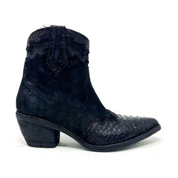 Chelsea-stövlett i brunt mocka med slip on-design och sidoresår. Skon har en spetsig tå och svart sula. Foder och innersula: 100 % naturläder Yttersula: 100 % läder Klackhöjd: 15 cm Skaftets höjd: 8,5 cm