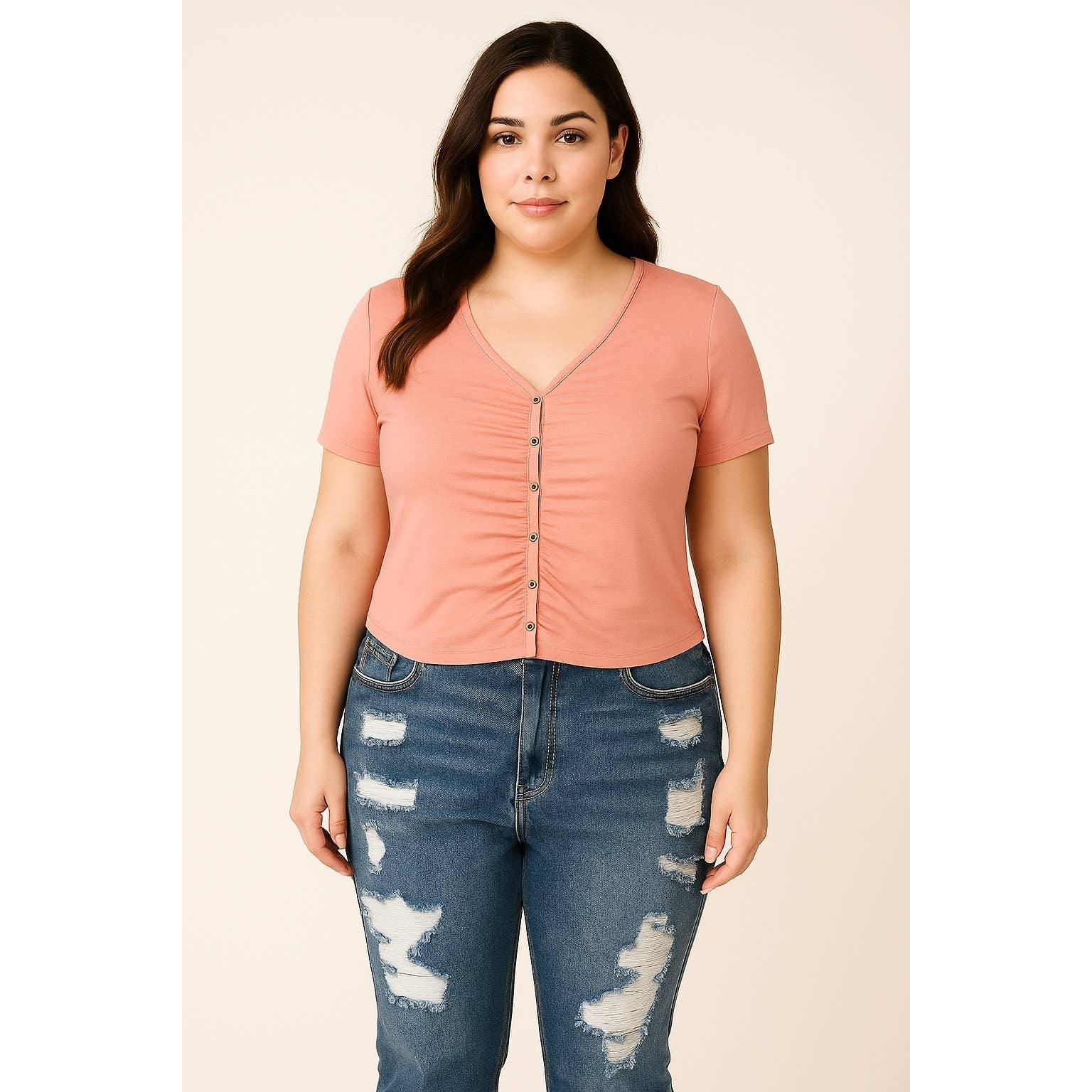 - En plusstorlek, långärmad bodysuit i ett kraftigt mesh-tyg med ärmar, bomull-rayon jerseytyg med öppen bröstdetalj - Elastisk benslut - Dubbel tryckknappsstängning - Importerad