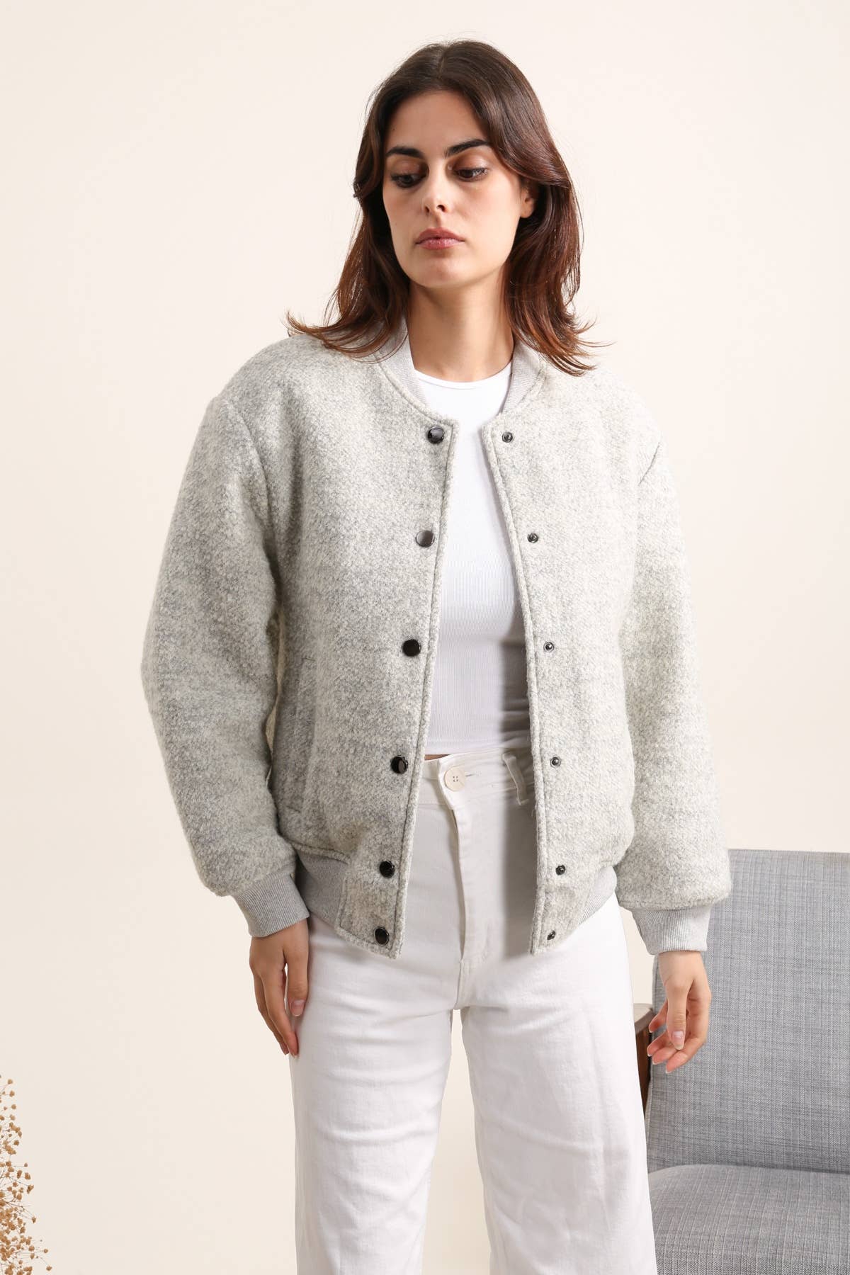 Vår Puffer Bomberjacka har dragkedja framtill och fickor. Vävda.