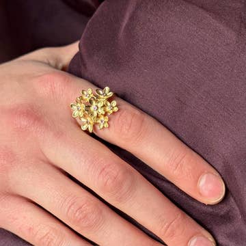 En elegant utformad Maximilian-stil handske med nitar på knogarna och skulpterade nitar, böjer sig runt ditt finger i ett skyddande grepp. Detaljer: 10 mm bred handske, 3,5 mm bred ring handsken är i massivt 14k gult guld, ringen är i massivt sterlingsilver detaljerna är graverade och handgraverade vilket gör varje handske unik välj mellan vänster eller höger handske