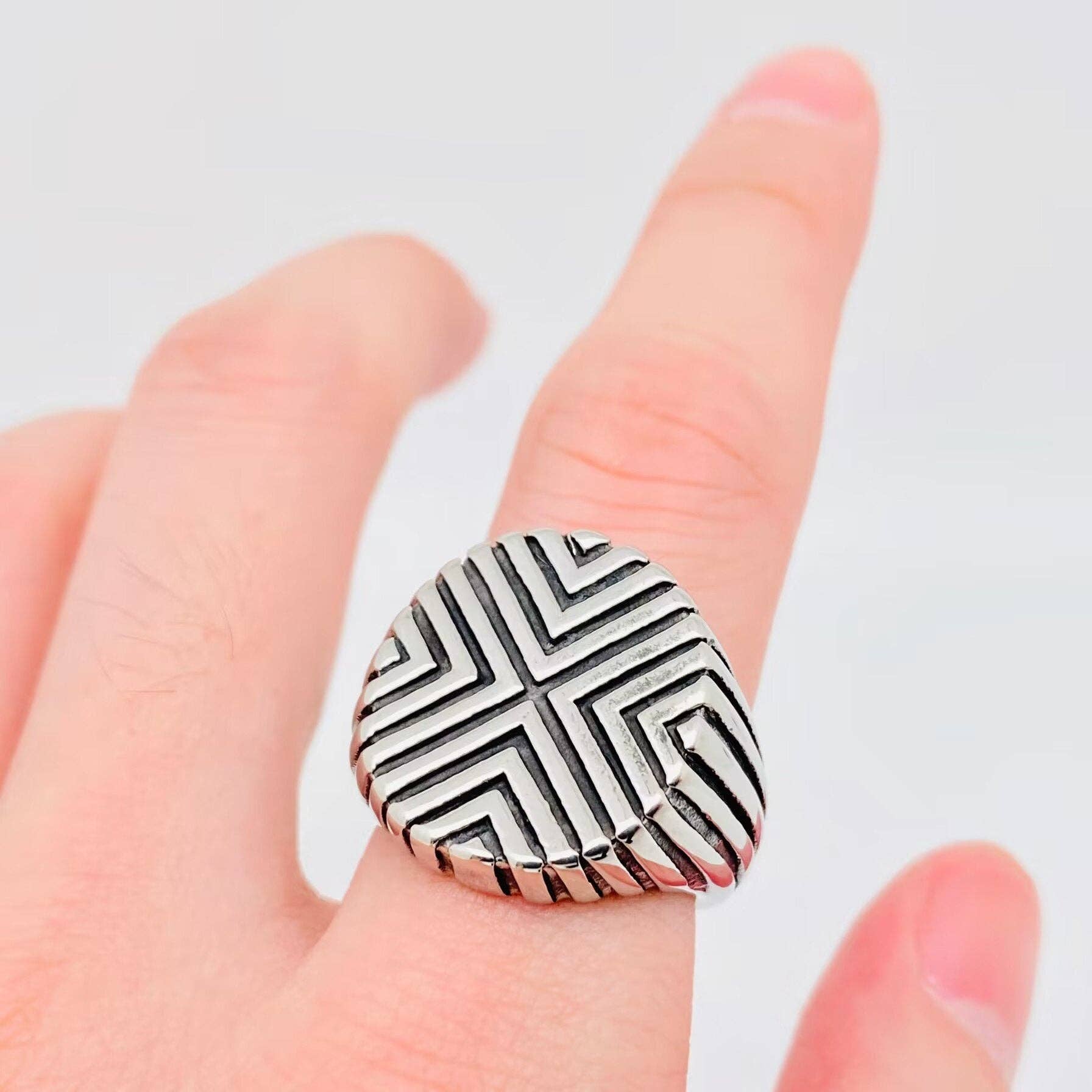 Typ: Ring Material: titan stål/316 rostfritt stål Storlek: Se bilden av storlek Process: Retro, vakuumelektroplätering och manuell polering Yta: Hög polska ★ Tillverkad av högkvalitativt rostfritt stål, nickelfri/blyfri, ofarlig för människokroppen. ★ Perfekta smycken gåvor för mannen