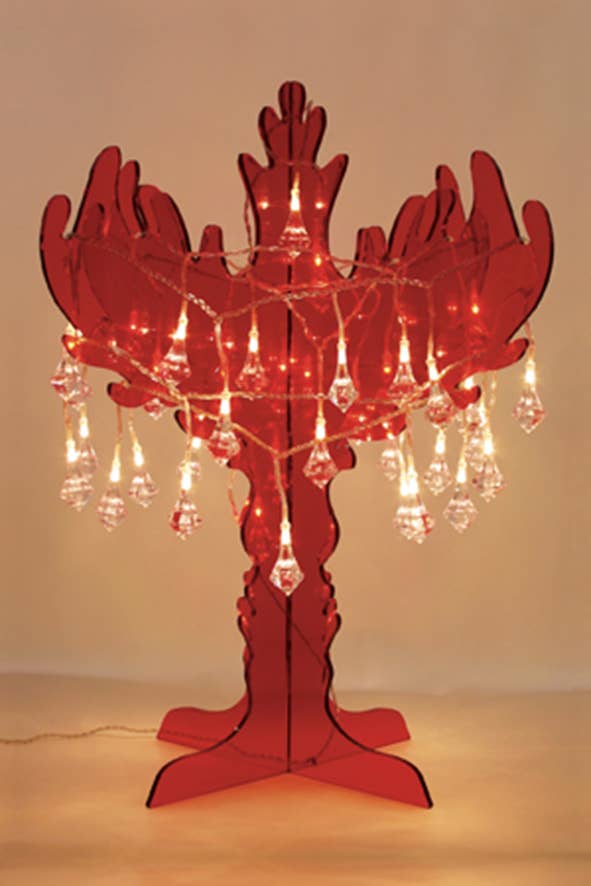 Denna vackra röda ljusstake är inspirerad av girandoler som vanligtvis pryder borden i slott och vackra hem. Ljuskrokens kropp och alla hängen är gjorda av glas – endast armarna är av akryl. Med en mer samtida design, utan att förneka sin barockstil, passar denna ljuskrona perfekt i både moderna och klassiska miljöer.