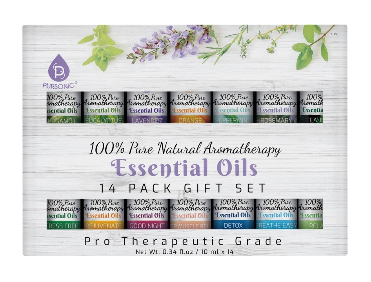 Pursonic Essential Oils kan användas med kompatibla aromdiffusorer eller många luftfuktare genom att tillsätta några droppar olja till vattnet. Diffusorerna och luftfuktarna släpper ut en doftande ånga i atmosfären, vilket ger dig en spa-liknande känsla i alla rum på ditt hus eller kontor. Diffusorer och luftfuktare säljs separat. Master Kartong Dimmar: 17,64 LBSX14.8"X13.9"x 10.8" Set med 12 eteriska oljor inklusive bergamott, kokos, eukalyptus, rökelse, jasmin, lavendel, citrongräs, pepparmynta, rosmarin, nypon, sandelträ och tea tree 0,34 oz. vardera