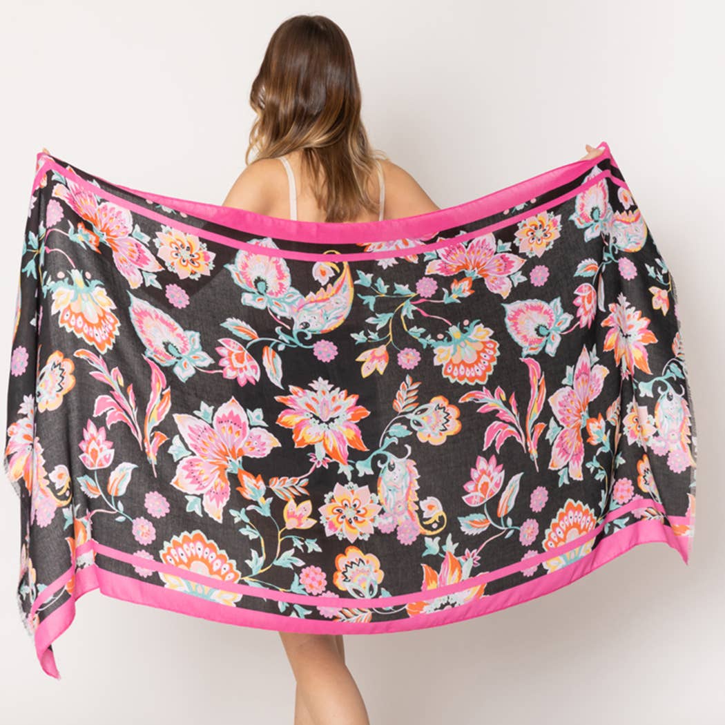 Tropisk blommig print halsduk - Storlek: 74.8 ”L x 35,4" W - 100% Polyester - Kan bäras som sjal/omslag