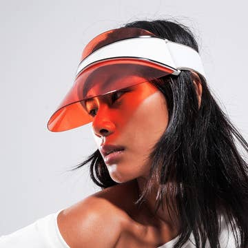 Håll det roligt och sofistikerat hela tiden och hålla solen borta från ansiktet med vårt rottingvisir. En vintage inspirerad pjäs med en modern och lekfull twist. Finns i bärnsten, blont svart och lera. Storlek 1 storlek passar alla. Material: Rontal-blad gummi