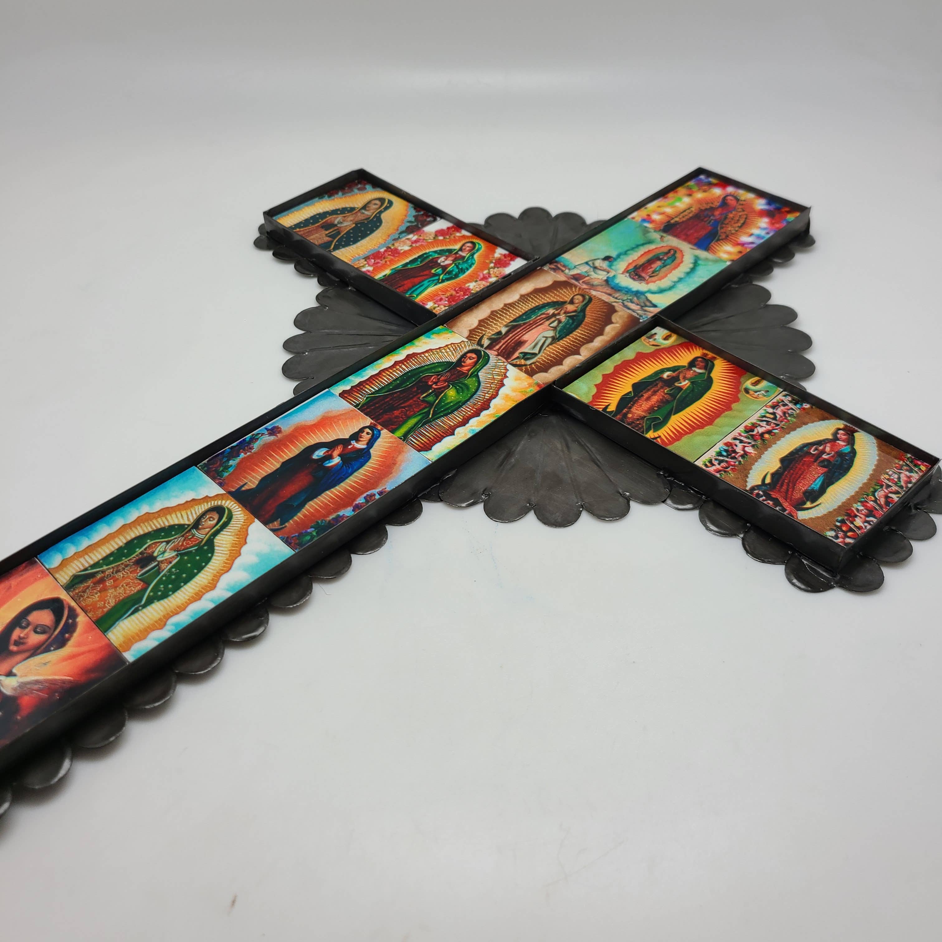 Guadalupe bildkors, folkkonst handgjord i Mexiko 6,5"x8" Metall **Bilder kommer att variera**