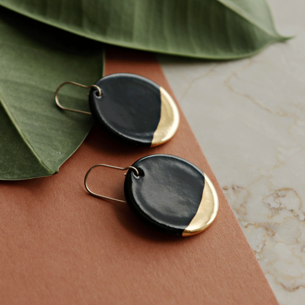 Alla Rozenthal smycken är handgjorda från början till slut. Inga två stycken är identiska och dessa variationer gör varje verk till ett originalkonstverk. MATERIAL OCH STORLEK *Porslin handmålade med 24k guldlyster. *14k guldfyllda krokar - nickelfri *Lätt - 4g *Storlek: 35 x 15 mm (1,38 x 0,59 tum)