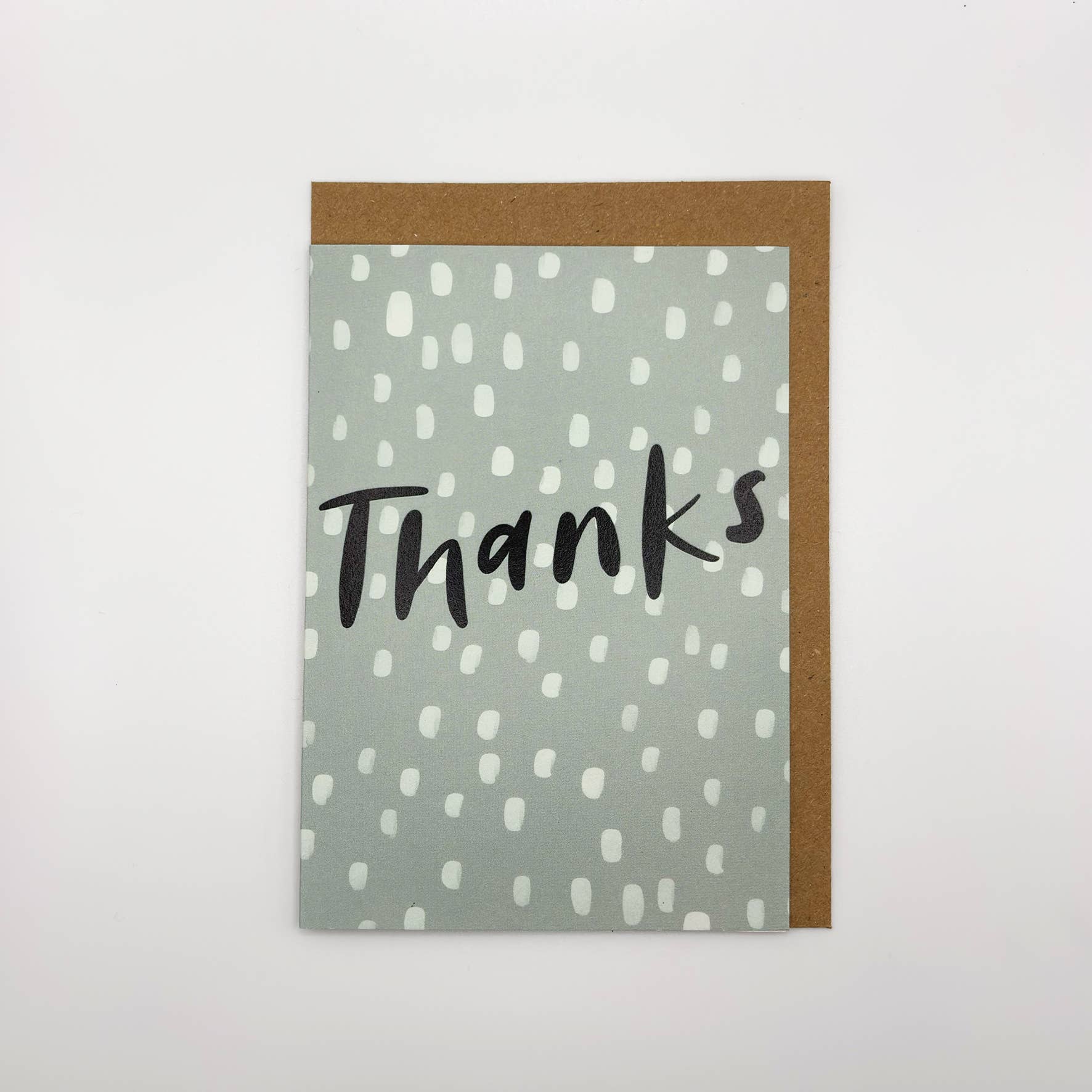 Ett minimalistiskt och designinriktat tackkort tryckt på FSC-certifierat papper. Kortet levereras med ett brunt kuvert av återvunnet kraftpapper. Storlek A6 och är tomt inuti för ditt eget meddelande.