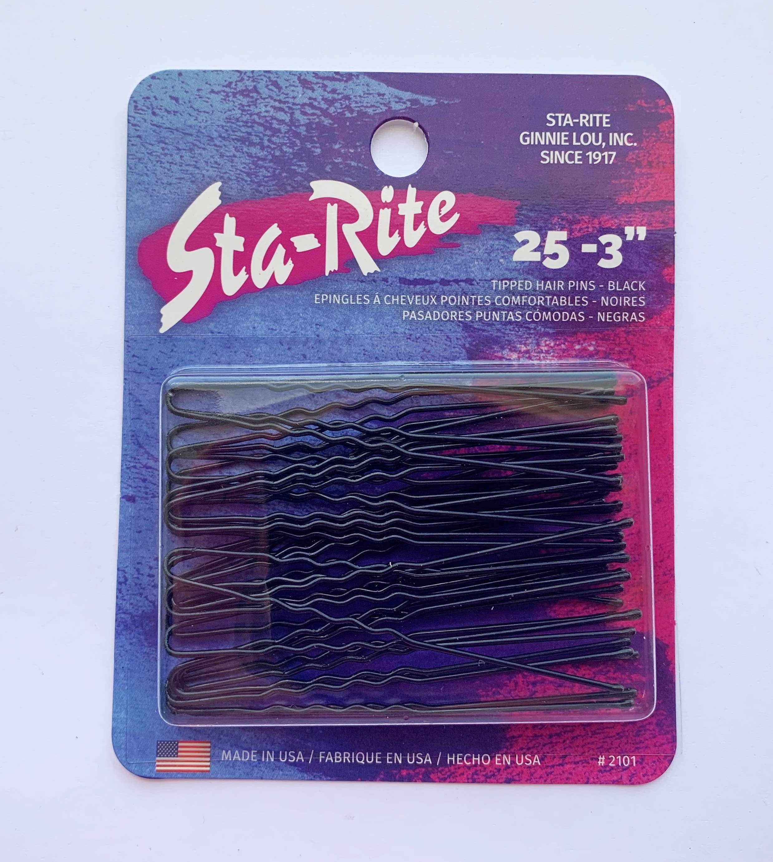Dessa amerikanskgjorda stift är precis vad du behöver för att uppnå vilken frisyr som helst! Du kan räkna med att dessa stift håller håret säkert och ger smärtfri borttagning när dagen är över. Den högkvalitativa tråden gör att stiftet kan behålla sin form, även efter många användningsområden och den smidiga tippningen drar inte håret eller pekar på huvudet. Oavsett om du tillbringar natten på stan eller arbetar runt huset, oroa dig inte för ditt hår eftersom våra stift kommer att Sta-Rite. 2½” tippade hårnålar, 40 per kort. Finns i svart, brons och silver. Tillverkad i USA.