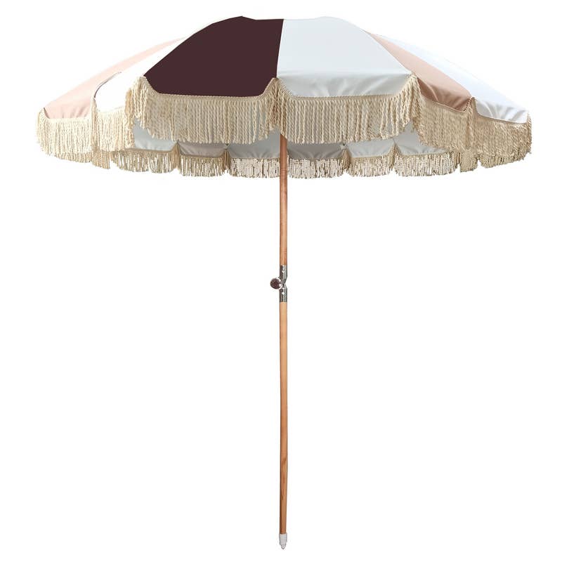 White Pearl-parasol från Wind & Sea är den perfekta accessoaren och en stilfull skugga för romantiska picknickar, stranddagar, soliga dagar på din uteplats eller som ett fint inslag vid dina trädgårdsevenemang. Njut av soliga dagar med premiumparasol från Wind & Sea som är lätta att bära med sig. Unika designlösningar med naturen i åtanke, ram av lätt naturligt trä och snabb samt enkel montering. SPECIFIKATIONER Användningsstorlek: 226 cm höjd x 180 cm bredd I bärväska: 114 cm längd x 20 cm bredd x 20 cm höjd Stångdiameter: 3,2 cm Vikt: 4 kg Material: laminerad stång av naturligt trä, bomullsfrans och tofsar, premium bomulls- och polyesterblandning i duk samt matchande bärväska, glasfiberbalkar, aluminiumgångjärn, integrerad plastankare.