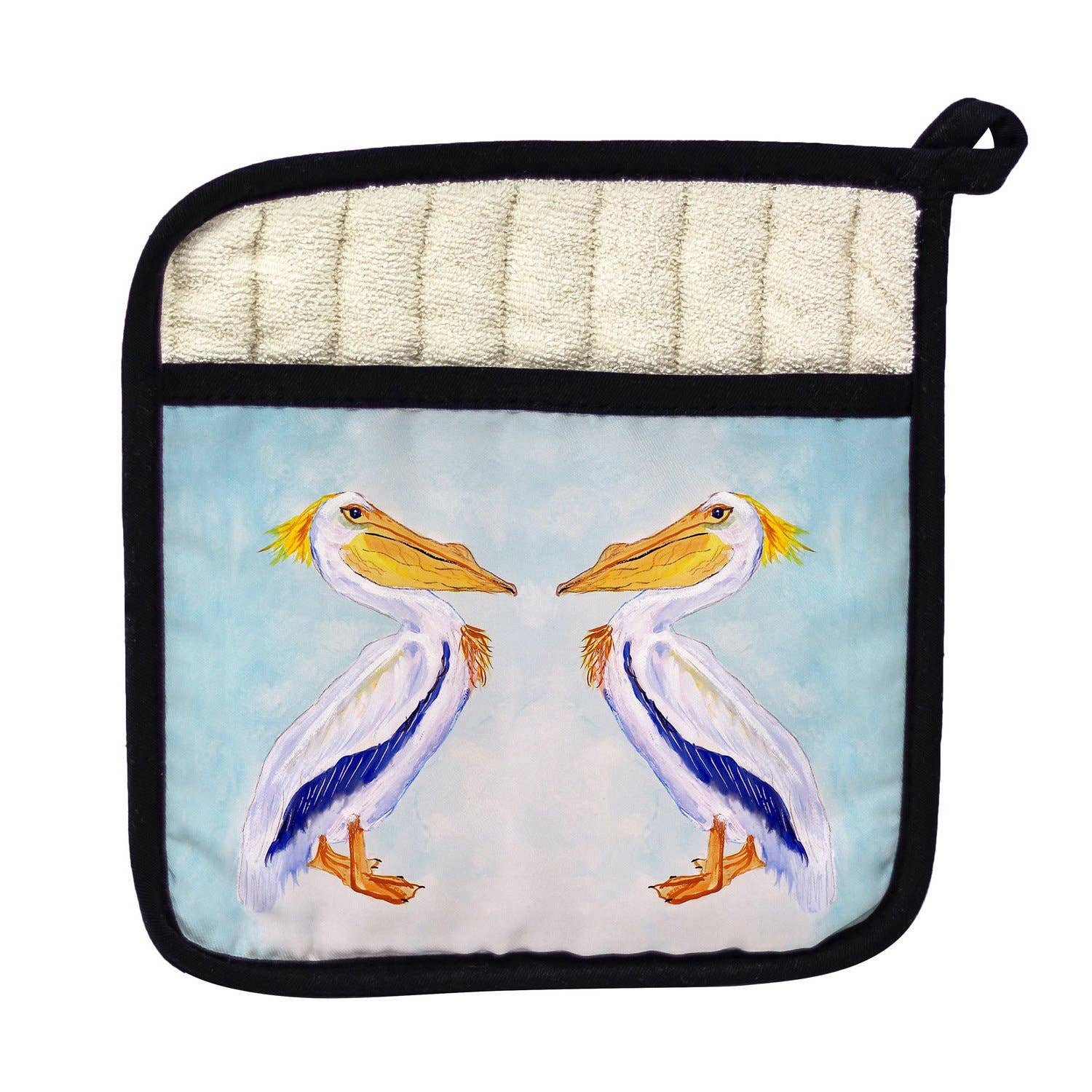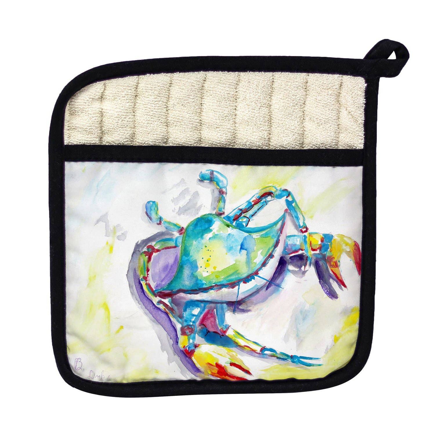 Snygg grythållare/ugnshandske med dubbla användningsområden med levande tryckt frontpanel. Den mjuka innerfickan i frotté gör det möjligt att använda som en ugnshandske. Värmebeständig upp till 400 grader. Alla våra produkter är baserade på mönster av konstnärerna R.B. Hamilton och Betsy Drake och är tryckta i USA från importerade material.