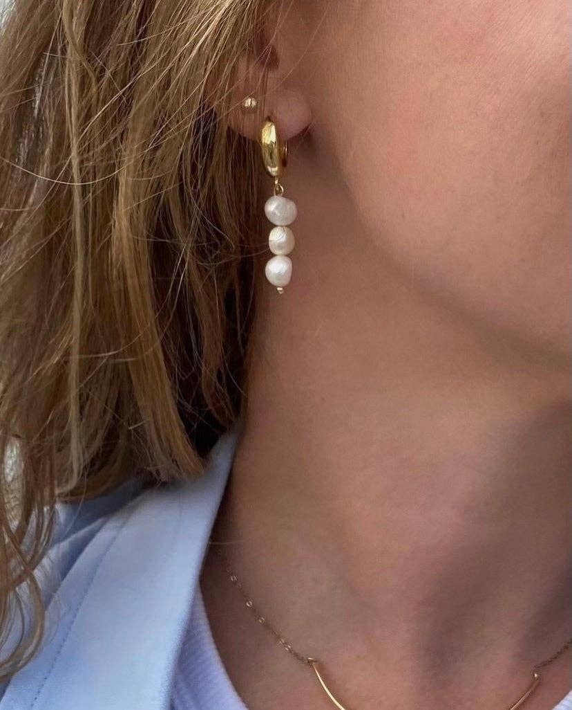 XL PÄRLA RING ÖRHÄNGEN Sötvattenspärlor är en tidlös parning, ungefär som vårt arv och rykte om fina smycken. Dessa lyxiga uttalande örhängen är tillverkade för att återspegla traditionen samtidigt som den är modern och sofistikerad. Dessa örhängen har pärla ring detaljer och med 18K guld pläterade huggies och gem kedja. Material: 18K guldpläterade gem kedja örhängen och XL sötvattenspärlor Handgjorda i New York