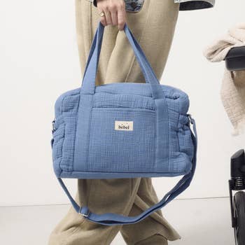 Organizeringsväska för barnvagn med vattenavstötande och fläckbeständigt yttre material. En dragkedjeförsedd huvudficka med sidofickor för vertikal flaskförvaring. Invändig foder med två öppna fickor. En frontficka täckt av en flik med magneter. Två korta handtag med kardborreband för att hänga väskan på barnvagnens handtag.