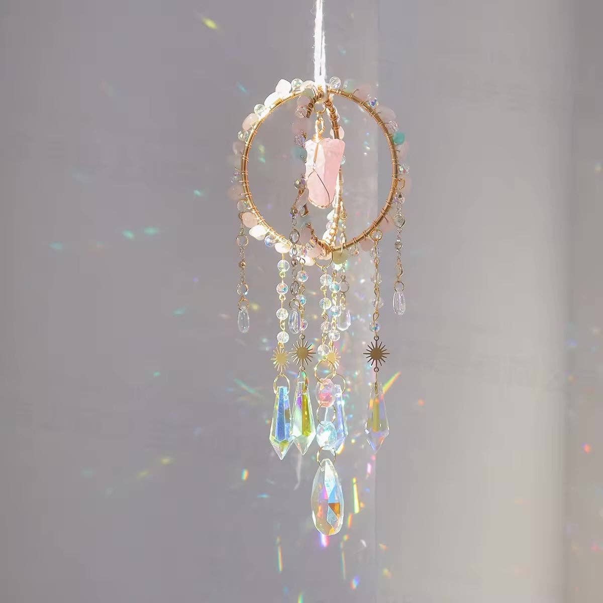 Solfångare – även kända som Suncatcher eller ljusfångare – är magiska ljusobjekt som fångar solstrålar och förvandlar dem till svävande regnbågspunkter. När ljuset passerar genom det slipade kristallprismat dansar färgglada ljusreflexer över väggar, golv och ansikten – ett ögonblick av ren glädje som man vill dela med andra. Varje ljusfångare är tillverkad med en guldfärgad mässingskedja och bär en trollslända som dekorativ symbol – den står för lätthet, transformation och ögonblickets magi. Det gnistrande kristallen är infattat i en tunn ring och förblir en stilfull blickfångare även på gråa dagar – i fönstret, på balkongen eller i trädgården. 🎁 En strålande present: Oavsett om det är till födelsedag, födelse, inflyttning, som en kärleksfull gest emellanåt eller för barnrum & trädgård – en solfångare passar för alla tillfällen och alla åldrar. Den skänker ljus, hopp och en liten bit magi. ✨ Detaljer: Kristallglas-prisma: ca 3 cm i diameter Mässingskedja: ca 50 cm lång Enkel att hänga upp med krok eller ögla Omsorgsfullt förpackad i silkespapper & dekorativ presentask med handstämplad text: You Crazy Diamond Handgjord i min ateljé i Hamburg – med stor omsorg, handmonterad och förpackad. Varje Suncatcher är unik, redo att skänka glädje. Ett handgjort stycke glädje – tillverkat med hjärta, hand och ljus. 🌈