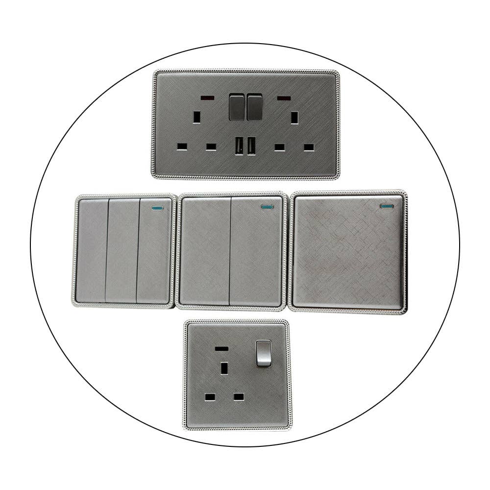 Skruvfria strukturerade ljusbrytare och eluttag i guld