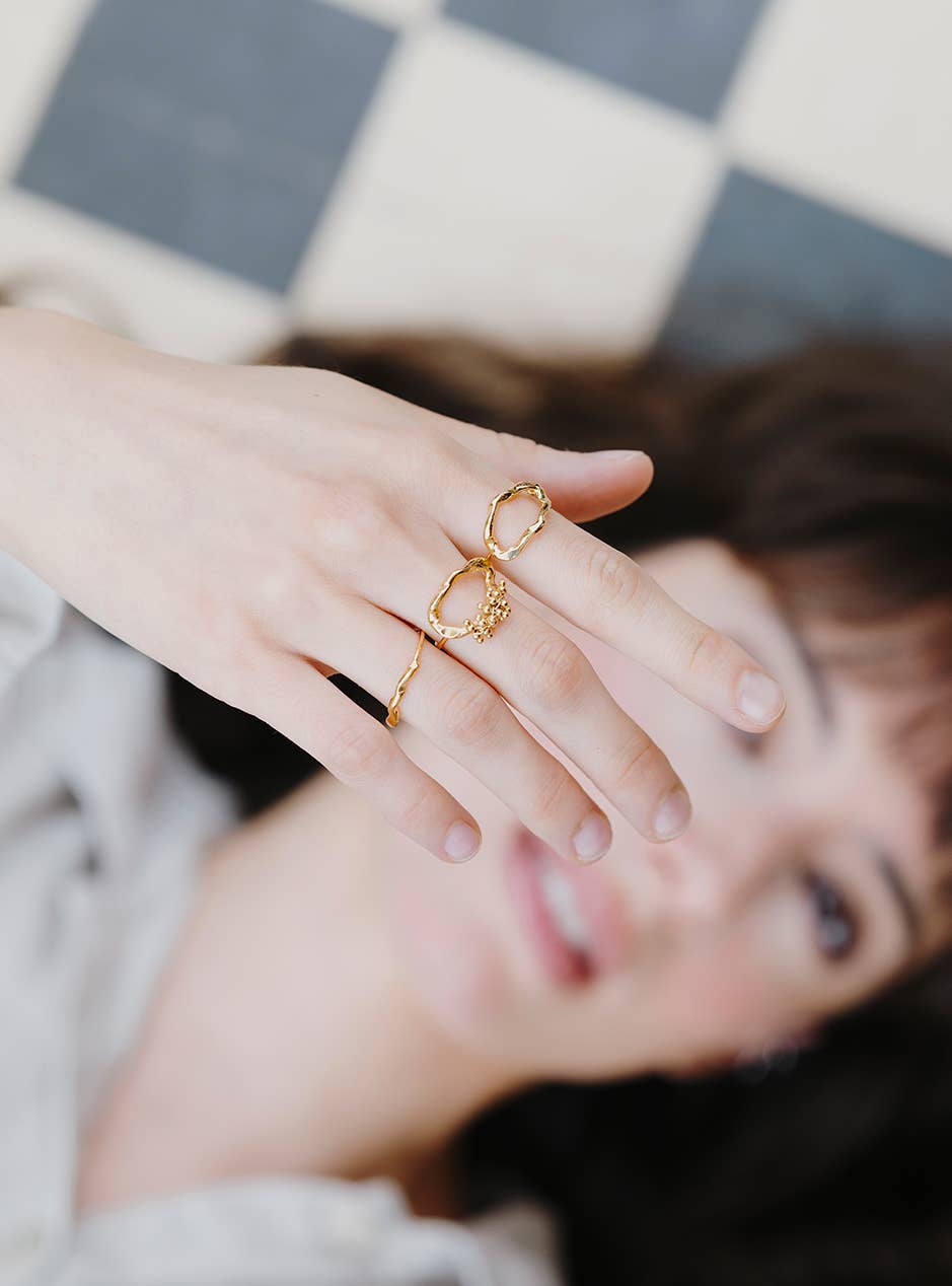 Fina sammanflätade pärltrådar, inspirerade av imaginära grenar, formar juvelerna i Mélia-linjen. Lätta och känsliga bitar som ger en perfekt balanserad touch av ljus, en detalj som försiktigt drar ögat. Varje bit varierar subtilt, varje smycke är unikt. Perfekt för att förbättra ett minimalistiskt utseende, perfekt för att lägga till en lätt detalj till en bröllopsdräkt. * Material: guldpläterad mässing, guldpärlkvistar * Mått: Justerbar modell * Vikt: 0.94g * Designad och handgjord i Paris * Levereras i sin individuella ekologiska förpackning. * Skötselråd: undvik kontakt med vatten och parfym så att juvelen behåller sin glans * Våra råvaror är noggrant utvalda och utan hälsorisker: de innehåller inte bly, nickel eller kadmium, i enlighet med lagstiftningen.