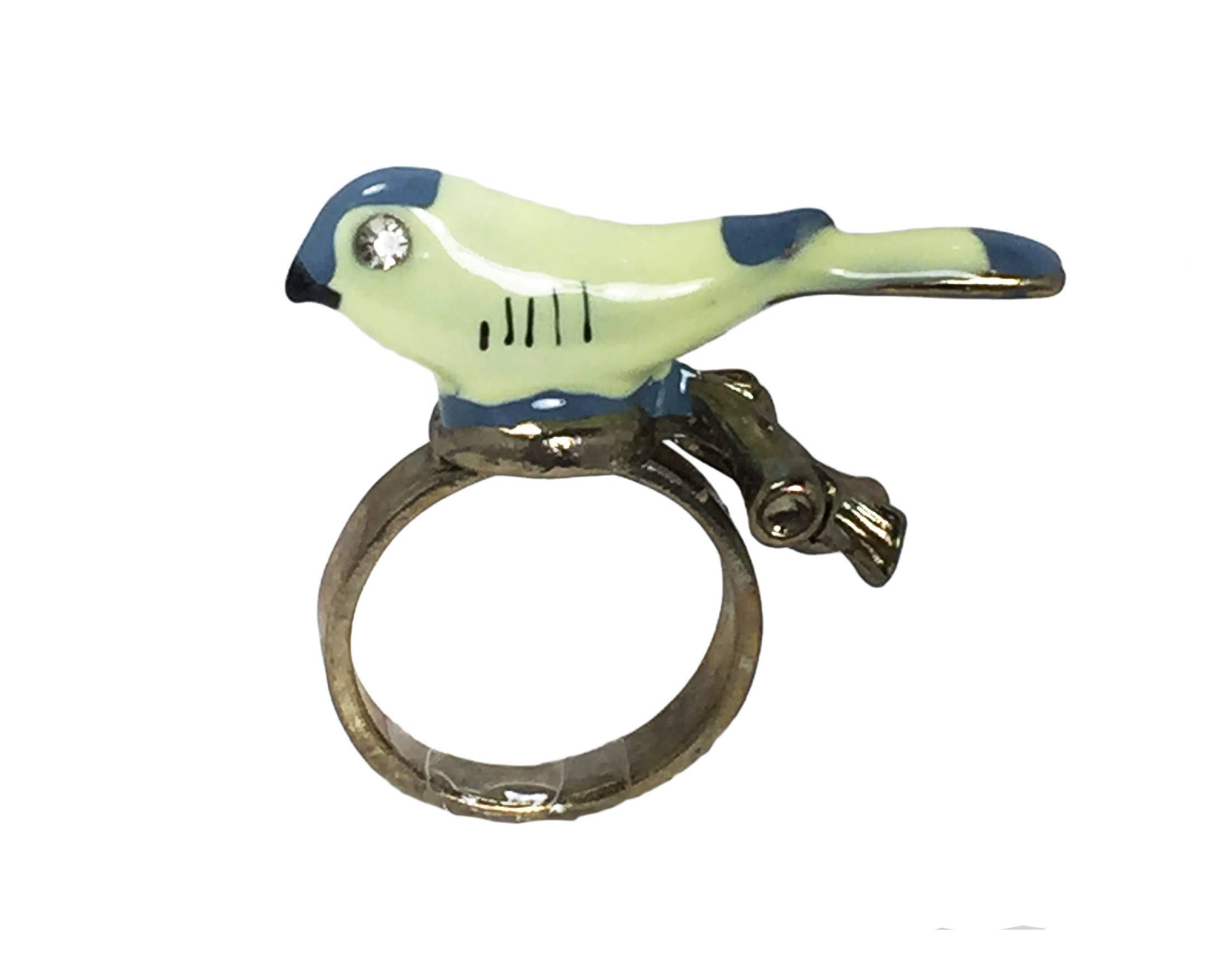 Bi och blomma inbäddad ring Guldpläterad över mässing, Glasstrass, Emalj Mått: ca 0,6 ”x 0,75" per styck (ringlängden mäts parallellt med fingret; ringbredd mäts vinkelrätt) (om alternativa storlekar föredras, vänligen meddela om lagertillgänglighet)