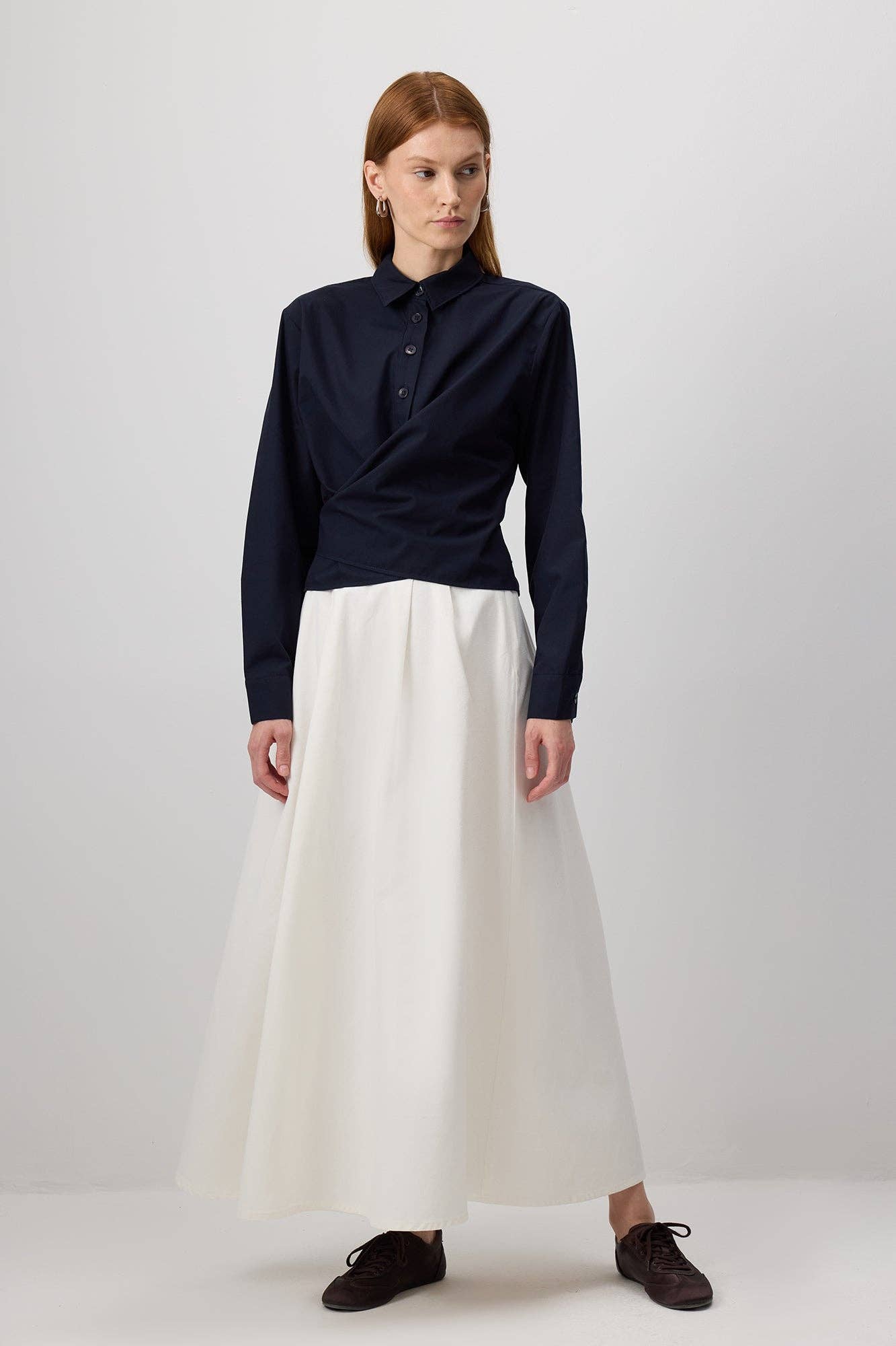 Raffinerad och feminin, denna elfenbensfärgade viskosblus är en tidlös del tillverkad av 100% viskos för en mjuk, andningsbar känsla. Med delikat blombroderi i spets längs kragen och manschetterna, är den förhöjd med uttalande guldfärgade knappar för en touch av lyx. Designad med en ren dold knappslå och en avslappnad lång silhuett, erbjuder denna blus mångsidig användning – styla den instoppad i skräddarsydda byxor för en chic arbetslook eller bär den över denim för en enkel vardagsstil. Ett måste för dem som uppskattar elegant detaljering och högkvalitativa turkiska tyger. ✔ 100% viskos – lätt och andningsbar ✔ Blombroderi i spets på krage och manschetter ✔ Guldfärgade uttalande knappar ✔ Dold knappslå för en ren finish ✔ Perfekt för arbetskläder, kvällslooks eller chic avslappnad styling * Höjd: 78 cm * Bröst: 120 cm * Ärmlängd: 58 cm * Modellhöjd: 177 cm * Modellstorlek: S