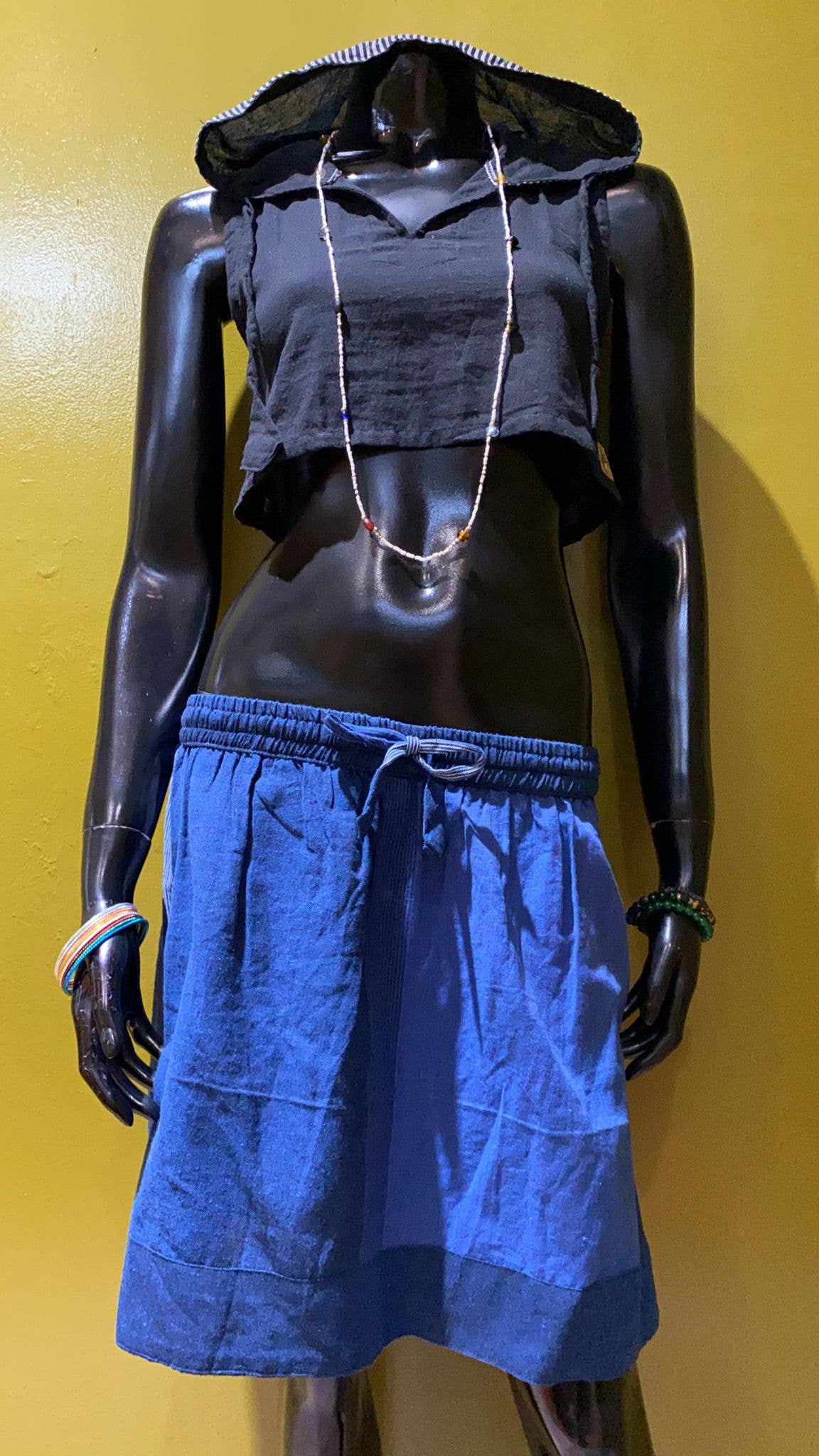 Bär den, och den blir mer än bara en kjol – den är en berättelse, ett konstverk, en bit tradition. I en värld där mycket är förgängligt erbjuder denna kjol en koppling till något bestående, till Nepals hantverkare, till traditioner inom hantverket och principer för rättvis handel. Det är inte bara ett plagg; det är ett livsstilsval, en historia som berättas, en sanning som levs. Handgjord i Nepal med bomull av hög kvalitet. Kjolen är skrynkelresistent och färgad med naturliga färgämnen. Maskintvättbar för enkel skötsel. Storlek: en storlek, längd 38 tum (96,5 cm), bredd 48 tum (122 cm), djup 0,1 tum (0,25 cm). Tillgänglig i begränsad upplaga.