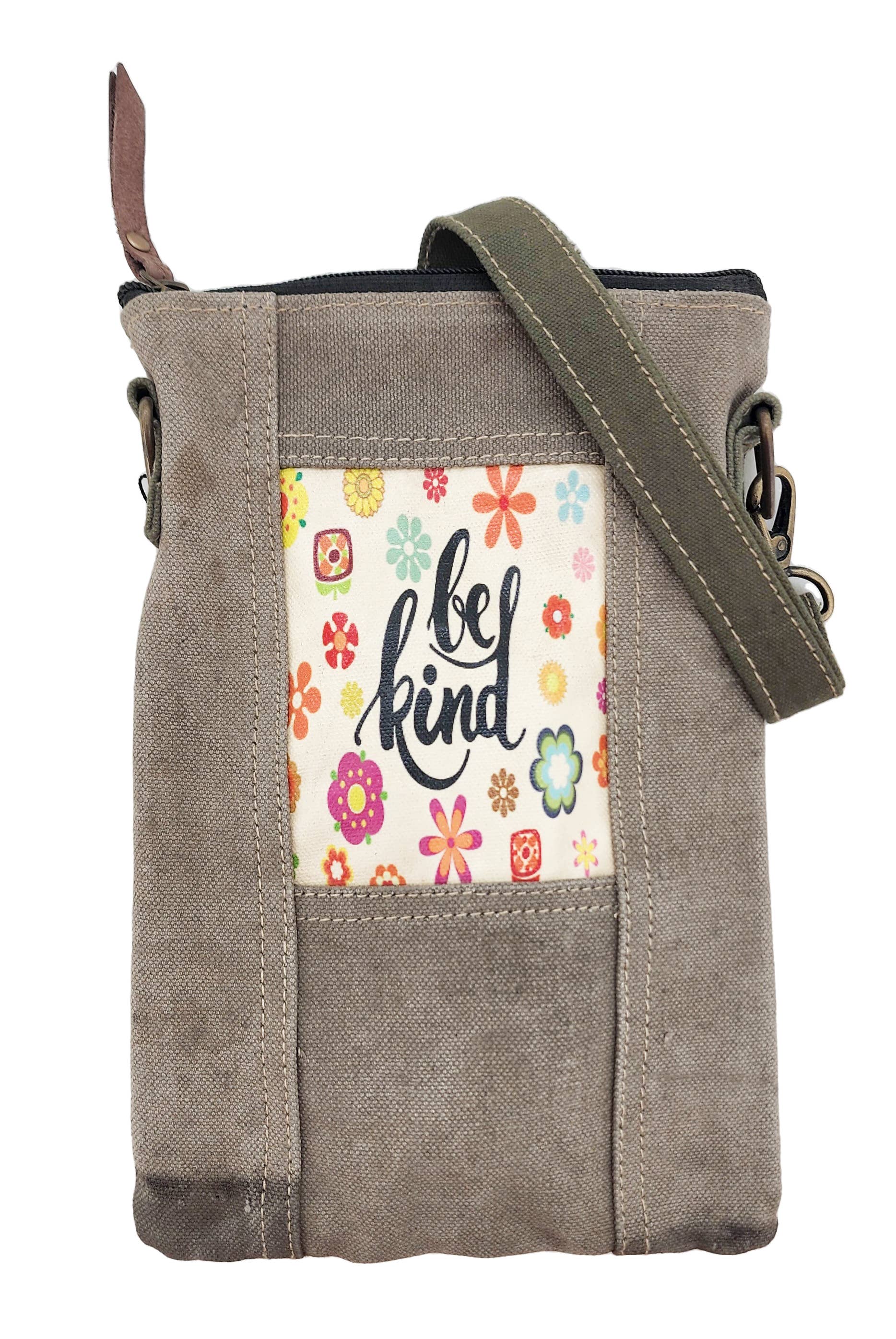 Söt liten axelväska av återvunnet militärtält prydd med ett tryckt märke på framsidan. Perfekt för att bära det allra nödvändigaste! DISCLAIMER: Våra väskor av återvunna militärtält är en hyllning till och en påminnelse om de uppoffringar och bidrag som militära veteraner har gjort. Vänligen notera att dessa väskor är tillverkade av autentiska använda militärtält och är inte helt nya dukar förpackade som återvunna tält eller presenningar. DETTA ÄR DEN RIKTIGA VARAN!! Som ett resultat kommer tältmaterialet att visa tecken på slitna liknande imperfektioner som bidrar till dess karaktär. Varje väska har skillnader i genuina imperfektioner, fläckar och färger. Din väska kommer att vara lika unik som varje soldats upplevelse när de sökte skydd i dessa tält, vare sig det var på träningsfältet eller i en stridszon. Remmarna kan variera i material och färger. Alla försäljningar är slutgiltiga. 6,5" B x 10" H x 2" D / Justerbar rem 53" L