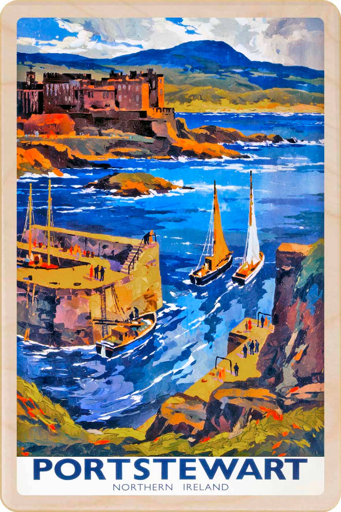 Giant's Causeway, Irland för semester: souvenir tillgänglig som miljövänligt trävykort och trämagnet. Tillverkad i Suffolk sedan 2012. TRÄVYKORT - Skriv med valfri penna - Kan skickas över hela världen med standardporto - Hållbart trä - Standard vykortsstorlek: 15 × 10 cm - Tjocklek: 4 mm | Vikt: 20g - Tillverkad i Suffolk TRÄMAGNET - Miljövänlig magnet - Hållbart trä - Storlek: 10 × 7,5 cm - Tjocklek: 4 mm | Vikt: 20g - Tillverkad i Suffolk Original vintage reseaffisch ©National Railway Museum/SCMG; utmärkande kort/gåva/souvenir med pålitlig försäljningsgrad. Dessa produkter tilltalar kunder som söker miljövänliga, meningsfulla minnen.