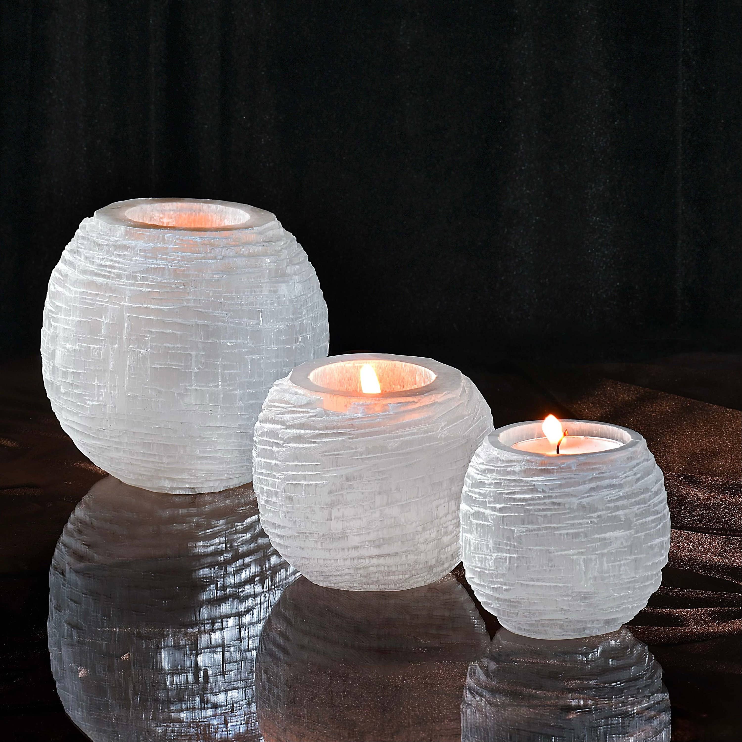 Naturlig marockansk selenitkristall teljushållare handgjord