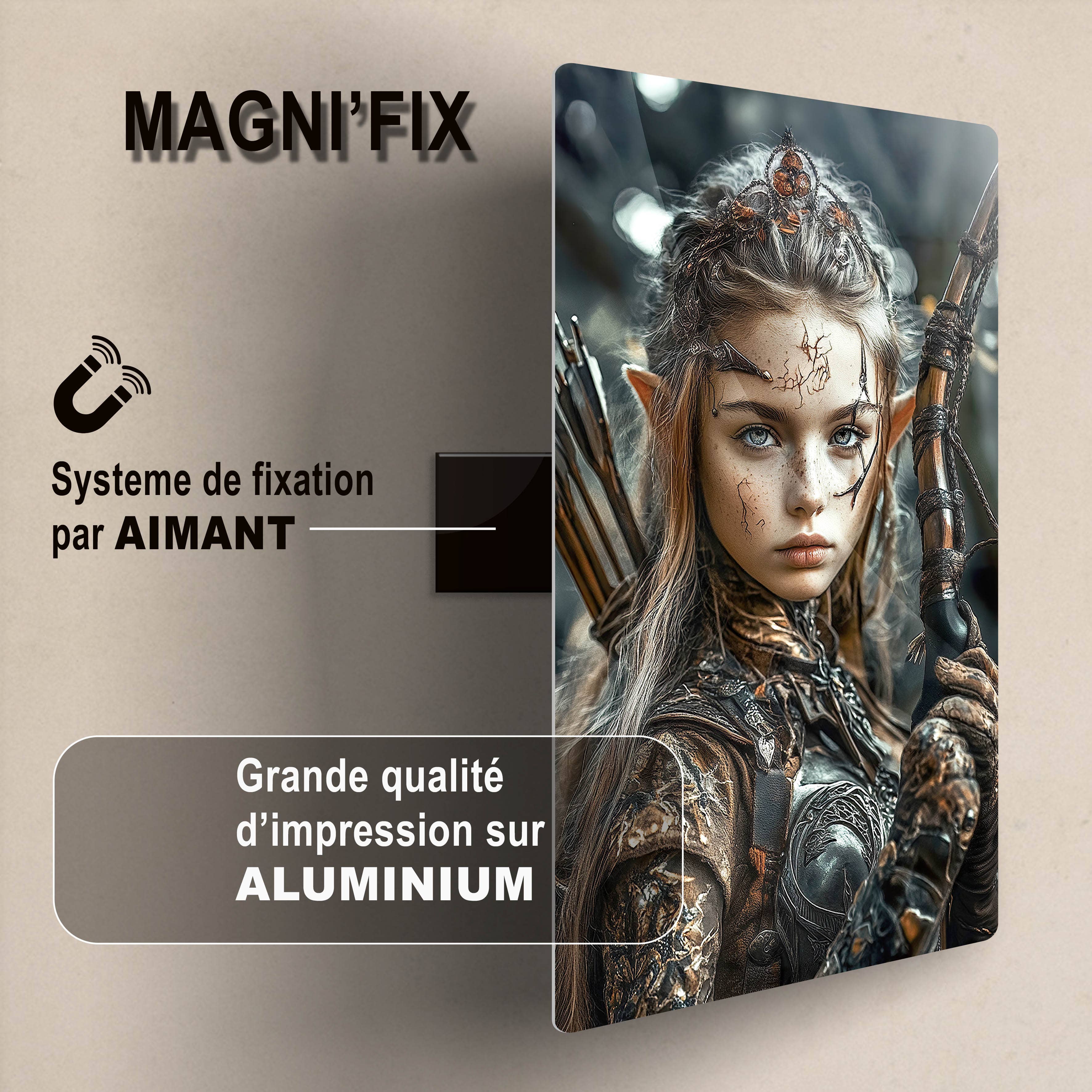 Premium Aluminiumtavla med Magni'Fix-fäste! Erbjud en aluminiumtavla som kombinerar modern elegans med ultrasnabb installation. Tack vare det magnetiska Magni'Fix-fästet kan dina kunder sätta upp sin dekoration på 3 sekunder, utan verktyg eller stress. Höjdpunkter: Bländande Visuell Kvalitet: En högupplöst tryck på aluminium, glänsande och fängslande. Innovativt Magnetfäste: Integrerade magneter för snabb montering, utan spikar eller hantverk. Elegant och Säker Design: Rundade hörn för en premium och säker finish. Varför Kommer Dina Kunder att Älska Det? Modernt, praktiskt och stiligt: dekoration blir en barnlek. Passar alla: konstälskare, inredningsproffs eller de som är allergiska mot hantverk. Lägg till denna innovativa produkt i din katalog och erbjud dina kunder en omdefinierad... magnetisk dekoration!