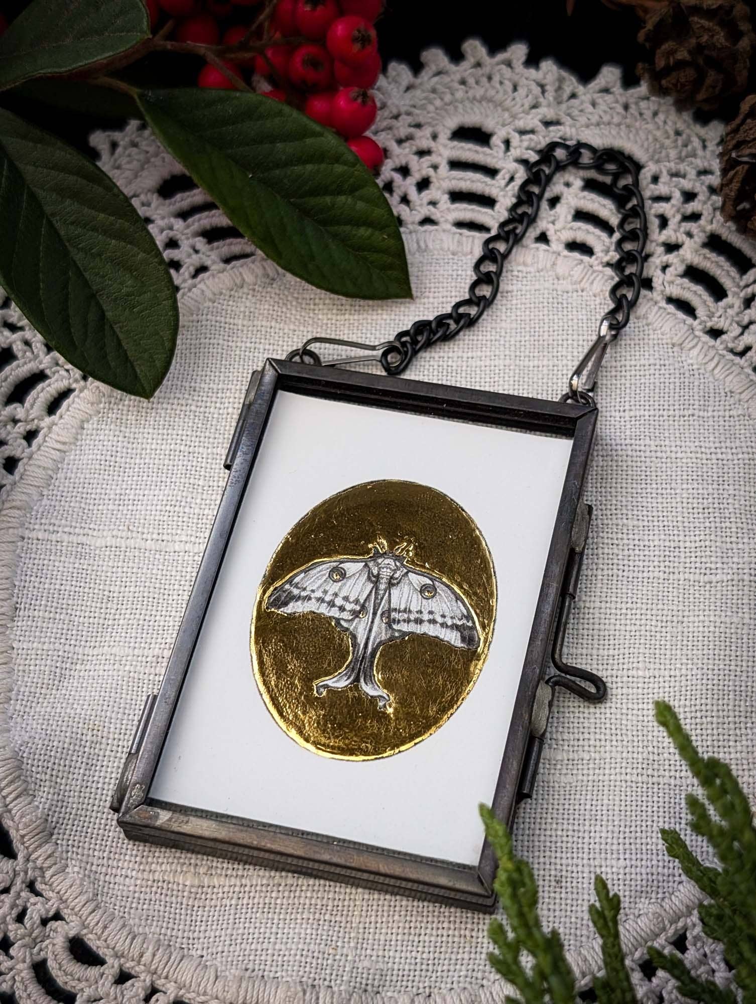 “Odontolabis Elegans” Hjortbagge från serien “Automata Sagrada”, ursprungligen målad i akvarell och guldbläck på papper. Öppen upplaga Giclee-konsttryck, levereras i en guld 3x4” ram. Gör en bra minnessak eller present. Finns även inramad och klar att hänga upp. Denna konst finns också som originalkonstverk.