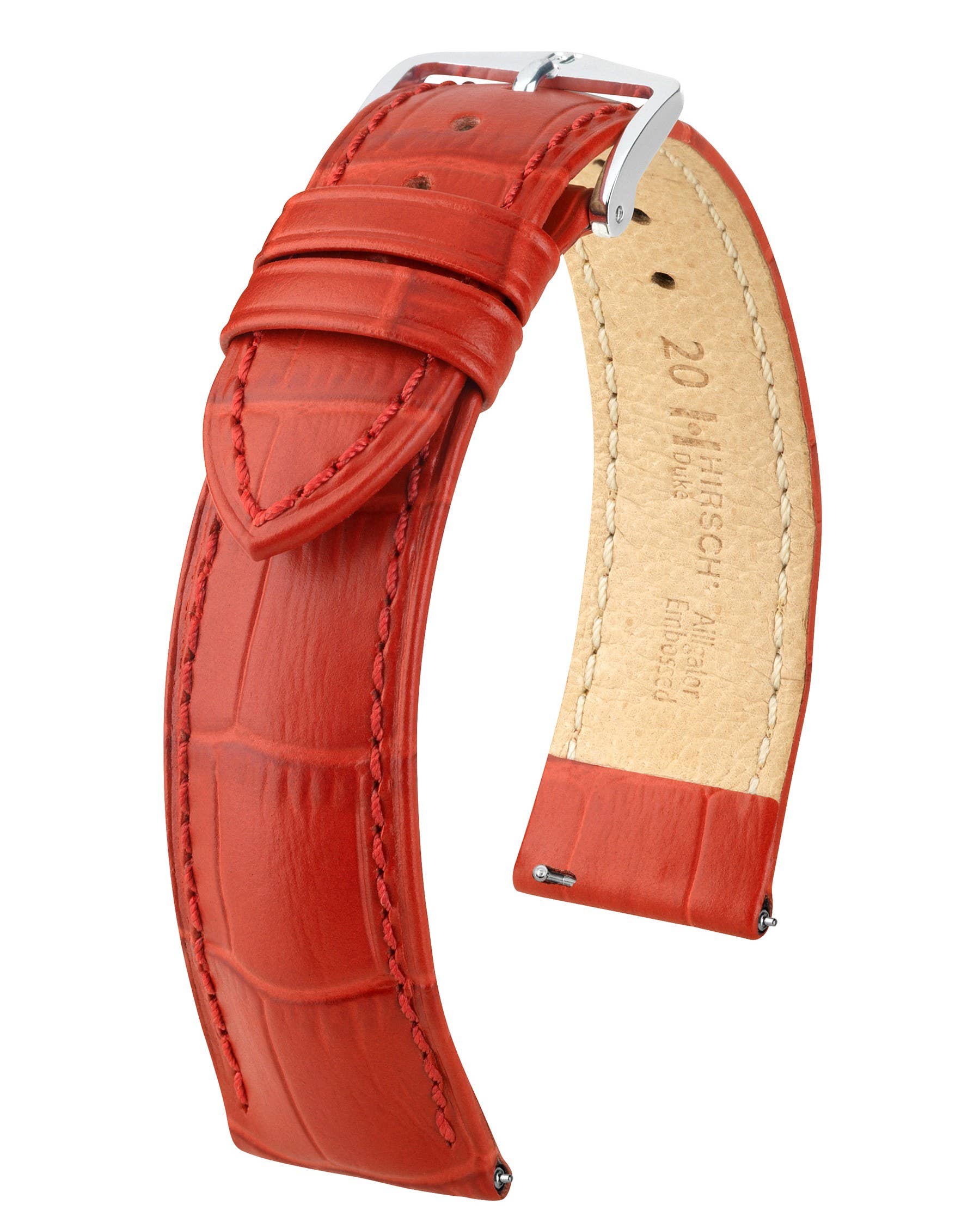 En sann evergreen som alltid är i säsong och speglar vår kärlek till bearbetning av det finaste lädret. Finaste italienska kalvskinn med naturtrogen alligatorprägling och semi-matt yta i karakteristisk tvåton HIRSCH Softglove foderläder Harmoniskt formad bombé Fin ton-i-ton söm Definierad prägellinje på armband och öglor Elegant spänne i HIRSCH Tradition design med Quick Release-system tillgänglig i 18mm, 20mm och 22mm - vänligen ange önskad anslutningsbredd vid beställning Produktnamn: HIRSCH klockarmband Duke L - finaste italienska kalvskinn - alligatorprägling - matt yta - för damer & herrar - honung - tillgänglig i 18mm, 20mm och 22mm
