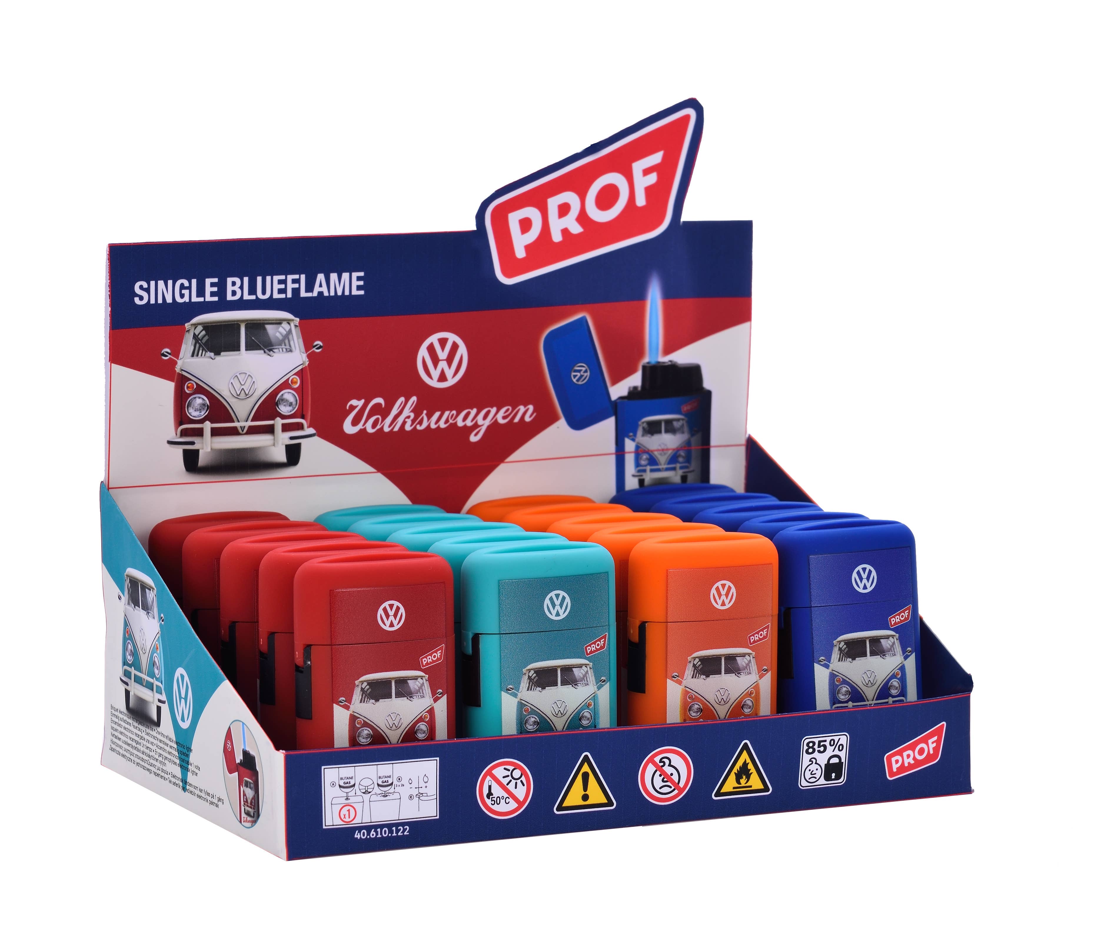 Volkswagen-licenständare med tema Combi 1950. Denna elektroniska tändare lyfter fram Combi 1950, en ikonisk modell kopplad till det legendariska tyska bilmärket. Justerbar eldhöjd för anpassad användning.