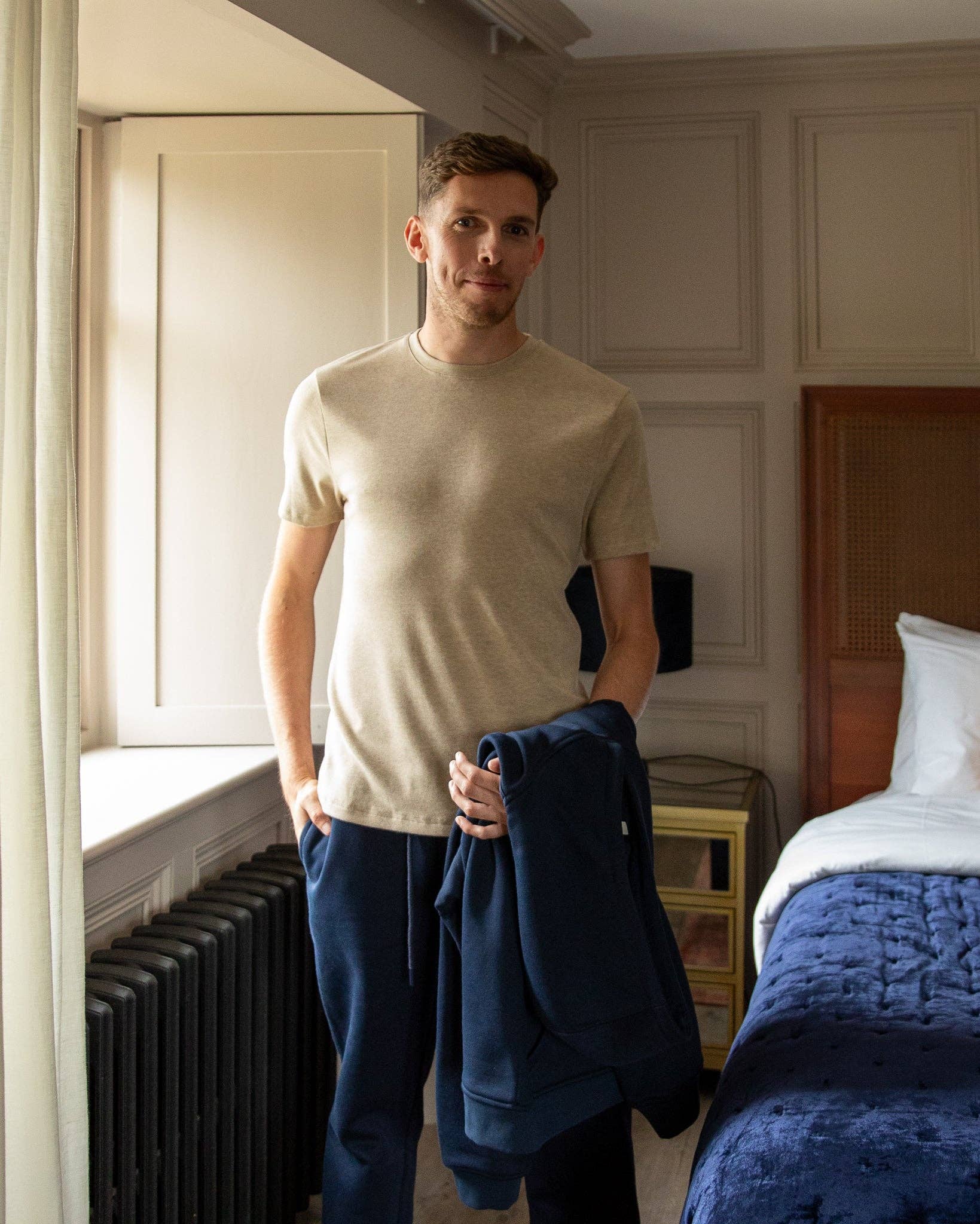 Theo är en tröja med rund hals och ribbad kant, stickad i ett supermjukt garn av medelvikt. Avslutad med en ribbad ärm och midjeband i full längd. Ett mångsidigt och tidlöst plagg.