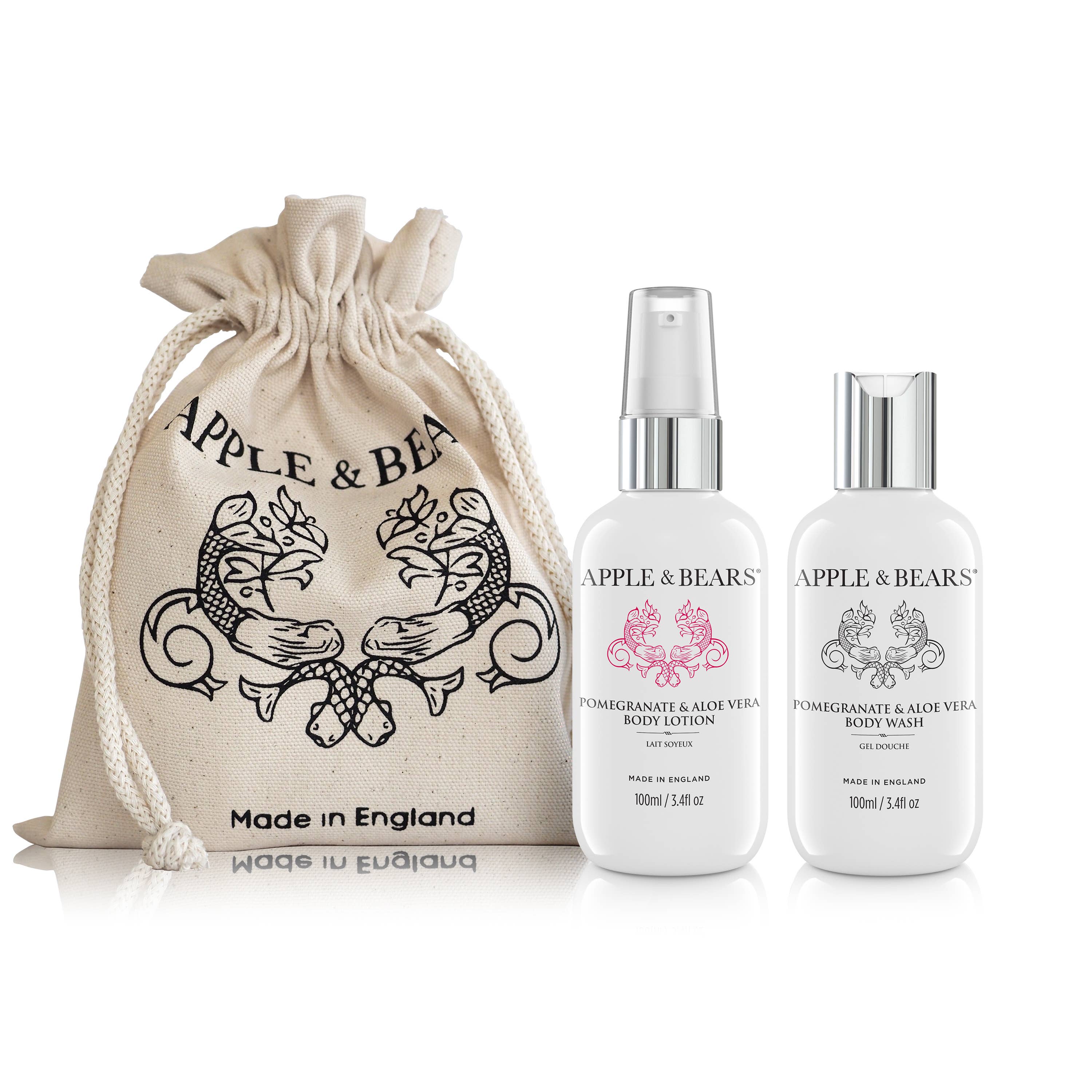 Detta unisex presentset innehåller en 300 ml kroppstvätt och 300 ml kroppslotion berikad med antioxidantrikt grönt te och bergamott. Båda produkterna är veganska, cruelty-free och fria från starka kemikalier. Förpackad i en återanvändbar och biologiskt nedbrytbar bomullspåse, idealisk för miljömedvetna detaljhandelsmiljöer. • 99% naturliga ingredienser • Fri från gluten och alkohol • Naturlig huduppstramande ingrediens (lotion*) • Lämplig för alla hudtyper • 100% vegansk