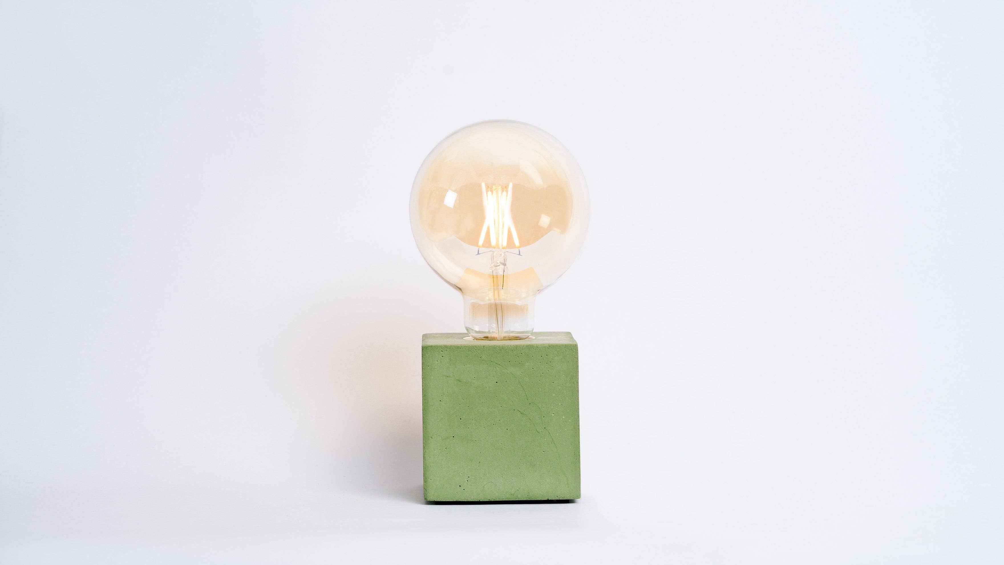 Kubformen, vår bästsäljare! Vår turkosa betongkubslampa är en modell som kombinerar klassisk och modern design. Den här lampan har en kubformad betongbas, mått 8 cm x 8 cm, i färgad betong – ett måste för inredningen. Dess form och storlek gör att lampan passar i alla rum. Den kan användas som bordslampa i vardagsrummet, som sänglampa eller som skrivbordslampa. Den runda LED-filamentlampan förstärker den industriella känslan. Lampan med en bärnstensfärgad finish ger ett varmt sken. Låt dig förföras av vår vackra färgade betongkubslampa, tillverkad på ett traditionellt och omsorgsfullt sätt i Paris berömda Maraisdistrikt av designern Justine Moure. Detta är en unik och originell skapelse, tillverkad i Frankrike och finns i flera färger!
