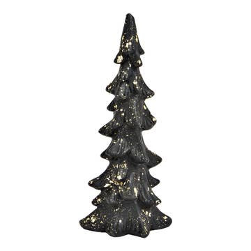 Winter's Eve Tree är ett dekorativt bordsträd tillverkat av styvt, avsmalnande flaskborstmaterial. Trädet har en rund träskivbas och är avslutat med en skimrande guldfärg och tjock glitterbeläggning för en glamorös skogseffekt. Visa detta träd ensamt eller bland annan skogs-, guld- och vit bordsdekor för en elegant accent under vinter- och julsäsongen. Mäter 10,5 ”hög och 1,5” i diameter.