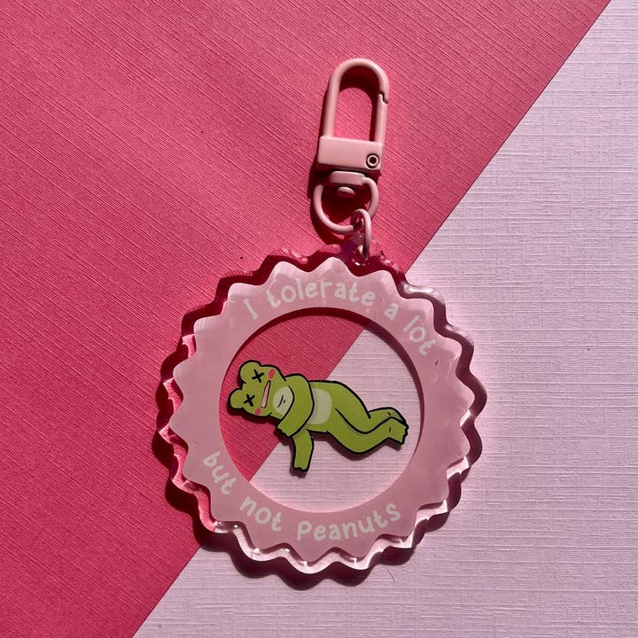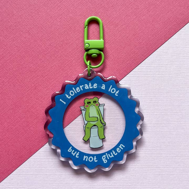 Omfamna din inre cottagecore med denna söta svamp-paraplybärande groda. DETALJER: Dubbel-sidig Blå metallspänne Cirka 6,35 cm Akryl med epoxibeläggning