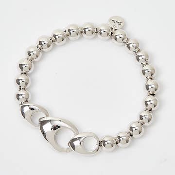 Gjutformar gjorda av riktiga kaffebönor används för att gjuta dessa solida återvunna sterlingsilverbönor. Tio länkas samman till ett justerbart 7"-8" armband.