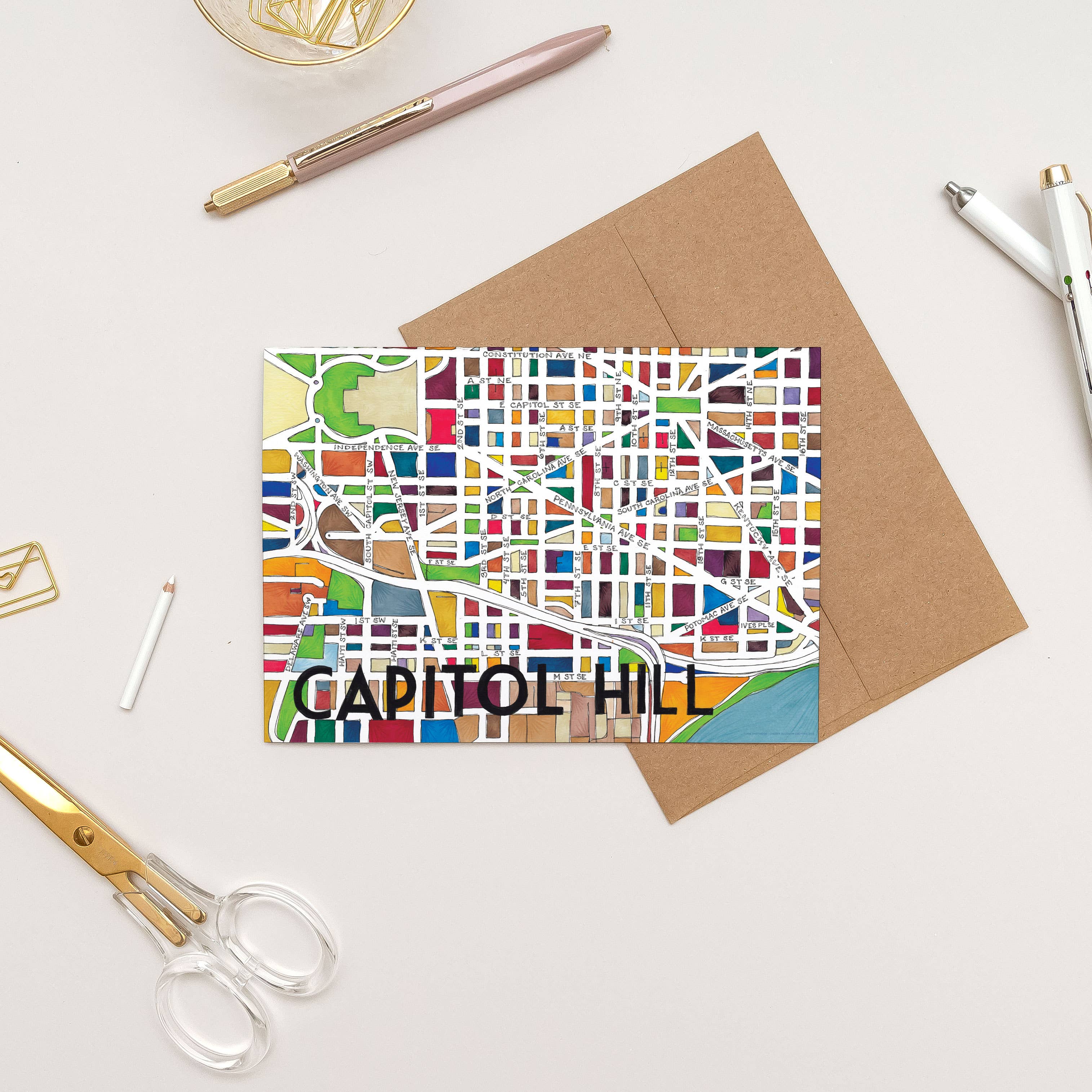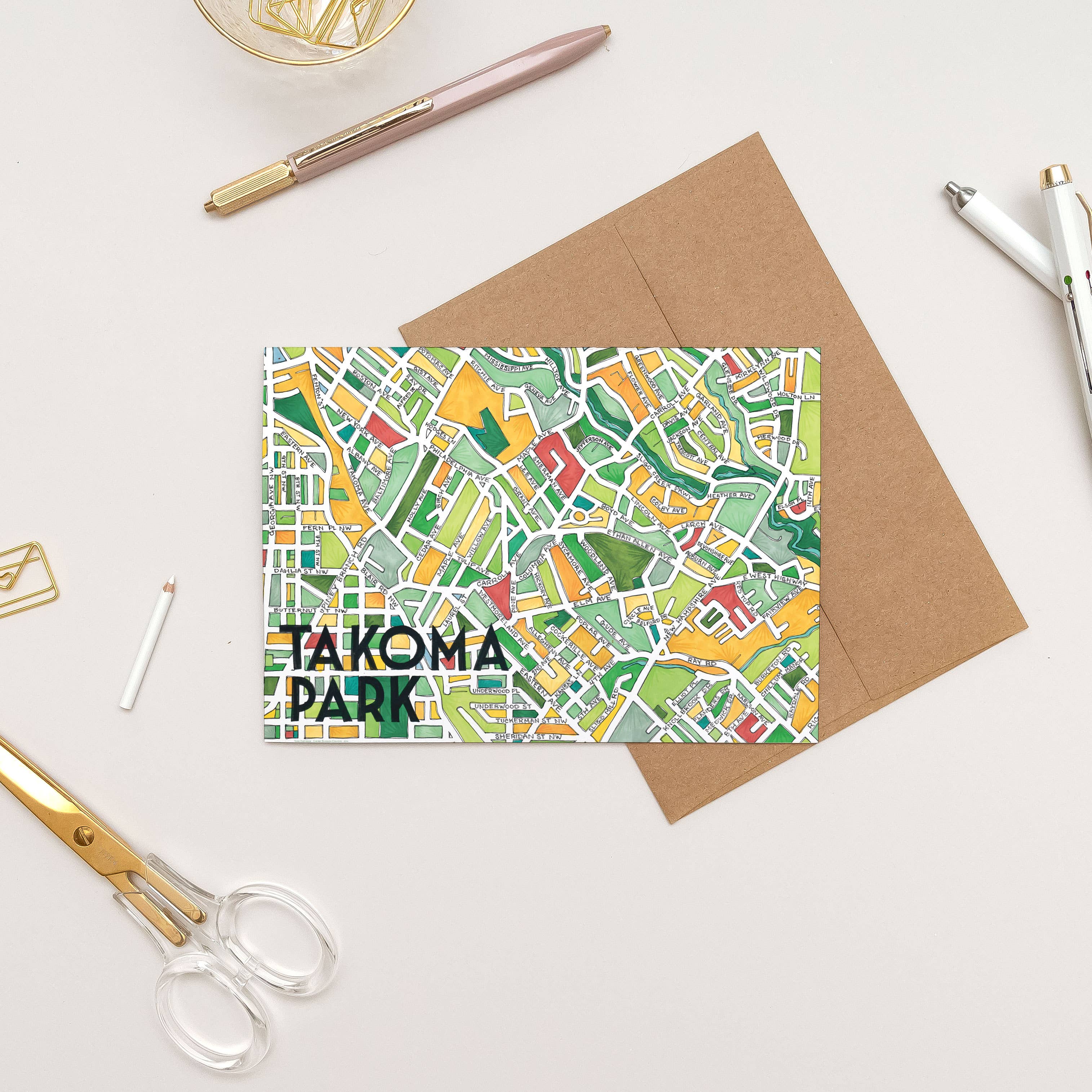 Möt Buffalo, New York Neighborhood Map gratulationskort! Våra gratulationskort är 5x7 ”så att de kan skickas eller enkelt inramas som ett minitryck. Varje gratulationskort är förpackat i en kristallklar polyhylsa med ett kraftpapperskuvert. Denna handillustrerade karta innehåller alla stadsdelar i stadsdelen, liksom stadsparkerna i ett levande grönt. Vi är glada att hjälpa dig att fira alla platser du kallar hem med detta färgglada kartgratulationskort! Som en del av vårt engagemang för planeten skrivs våra kartor ut i EcoSilk-papper med sojabaserade bläck för minimal miljöpåverkan. Våra kartor är lokalt tryckta i Washington, DC med livfulla, mättade färger och papper och bläck av hög kvalitet för att se till att färgerna inte bleknar med tiden.