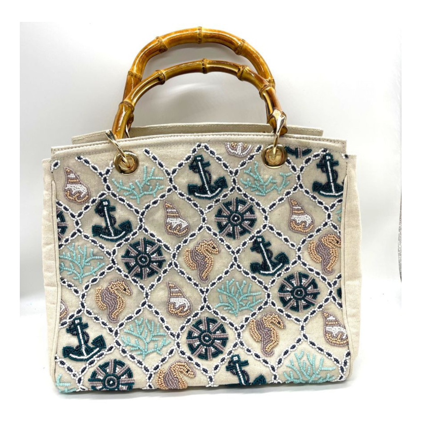 Upplev Tiana Designs tidlösa elegans och noggranna hantverk med vår SCP - 1826, en myntväska med pärlor. Denna handväska är inte bara en modeaccessoar, det är ett konstverk, varje pärla hämtad, skuren och färgad med största omsorg. Denna handgjorda handväska bär en unik historia, ett bevis på traditionerna för handhantverk i Indien. Det handlar inte bara om effektivitet, utan förfining i varje detalj. Bär dina mynt med stil, samtidigt som du uppskattar skönheten i utsökt hantverk.
