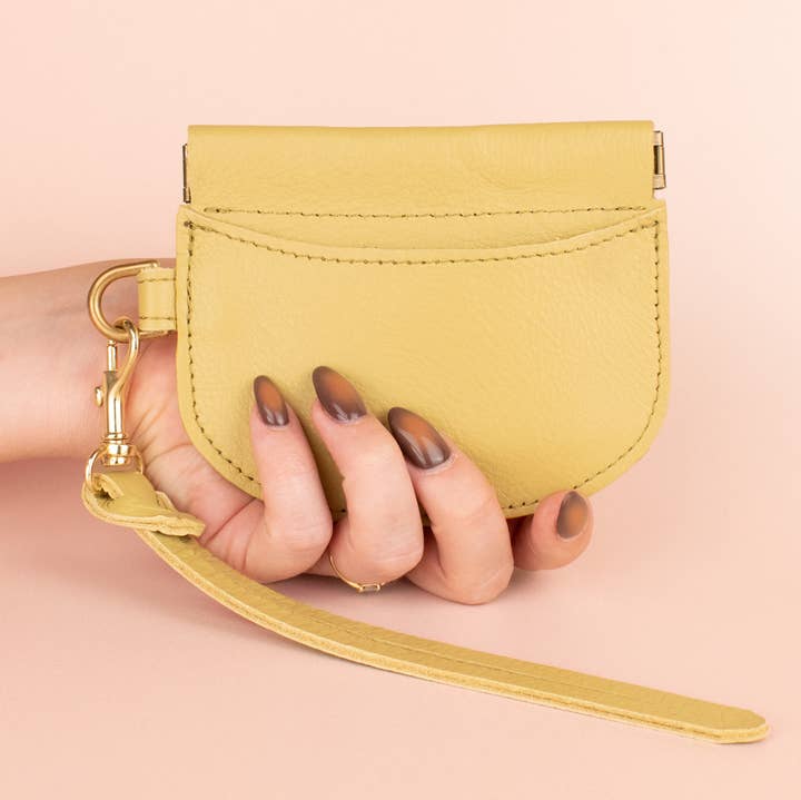 Slutligen en plånbok i perfekt storlek. Det är inte för stort, inte för litet. Det är plånbokens guldlock. Den kan bära allt, och ändå kunna passa i en söt, liten handväska. Den yttre fickan är perfekt för kort som används ofta och det inre facket passar kort, kontanter, mynt och till och med ett läppbalsam. Presssnäppet öppnas lätt, men stängs tätt för att hålla små saker säkra. Lägg till en matchande nyckelring i läder för att förvandla den till ett armband. FUNKTIONER: • 4,5" bred x 3,75" lång • Tillverkad av medeltungt läder • Centralt fack som är tillräckligt stort för att lagra kort, vikta sedlar och mynt • Fjäderstålhårdvaran som kan öppnas och knäppas genom att klämma in ytterändarna • Perfekt storlek för att passa i de minsta plånböckerna • Polerad mässing D-ringögla för att fästa ett armband eller nycklar • Avslutad med matchande tråd och kantfärg FÄRGER: • Benvit • Svart • Karamell • Barbie Rosa • Oliv • Matisse Blå Alla Cold Gold-artiklar tillverkas för hand i små satser i Knoxville, TN.