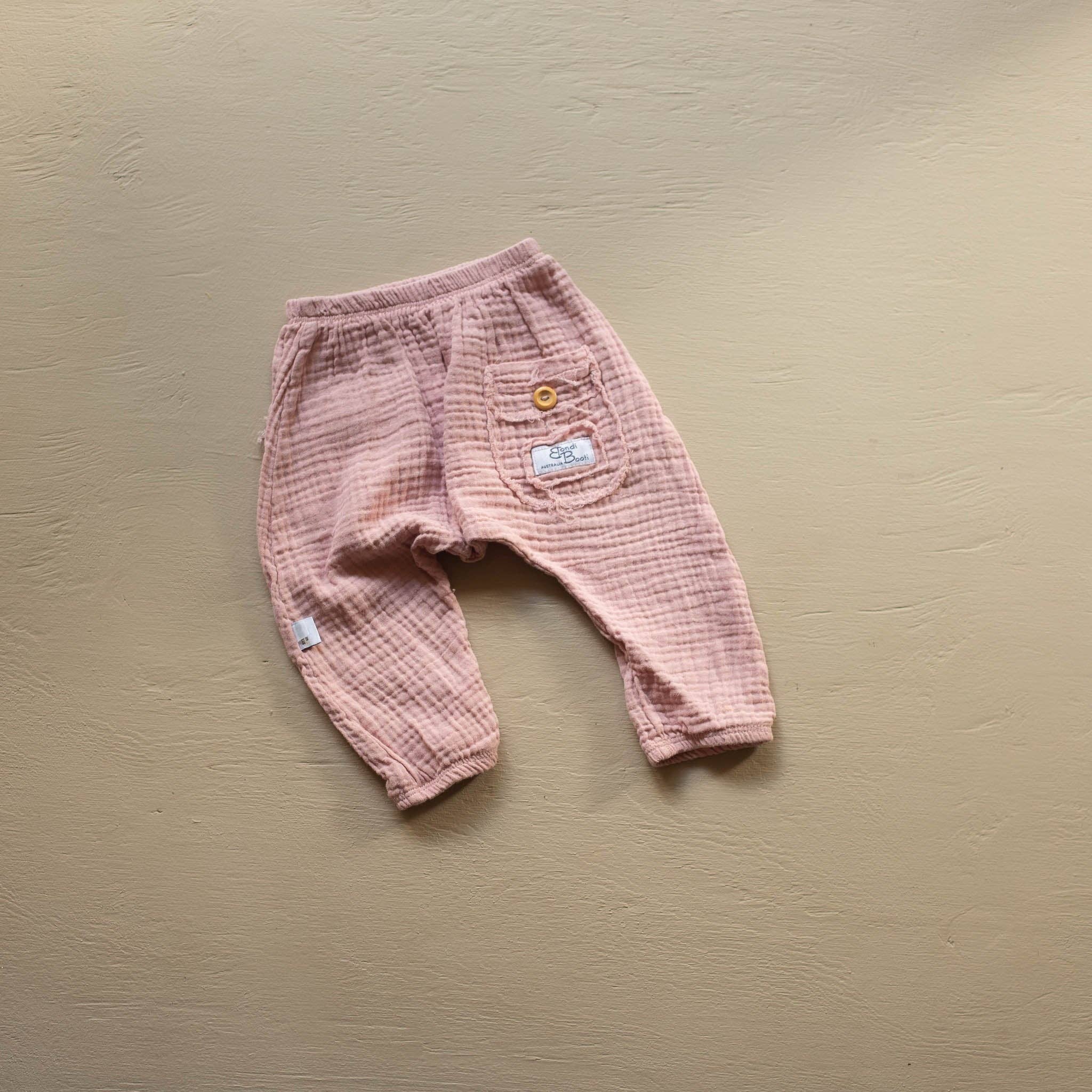 Bondi Booti Baby - Småbarn Haremsbyxor Våra supermjuka lätta haremsbyxor är den perfekta botten för varmare dagar och ljumma nätter. Inspirerad av familjetid tillbringad ute i parken och stranden, de är gjorda av ekologisk dubbelskiktad bomull för att ge den lösa överdimensionerade haremeffekten. Den generösa storleken på våra haremsbyxor och elastisk midja gör att de kommer att växa med ditt barn Vår kärlek till jordnära neutrala toner går utöver estetik. Att skapa bitar som kan bäras över kön innebär att förmedla våra artiklar är lättare och tar gissningsarbetet ur presentköp. Denna pjäs är en del av vår handgjorda i Australien kollektion. Varje bit i vår australiska handgjorda kollektion kan vara lite unik - vår standard och kvalitet är hög och varje liten skillnad i karaktär är bara hantverkets skönhet. Storleksguide 0 - 3m (XS) 6m - 12m (S) 12m - 24m (M) 2 - 3y (L) 3 - 4y (XL) Ungefär längd (cm) 32 35 39 45 49 Cirka Bredd (cm) 16,5 17,5 19 20 21
