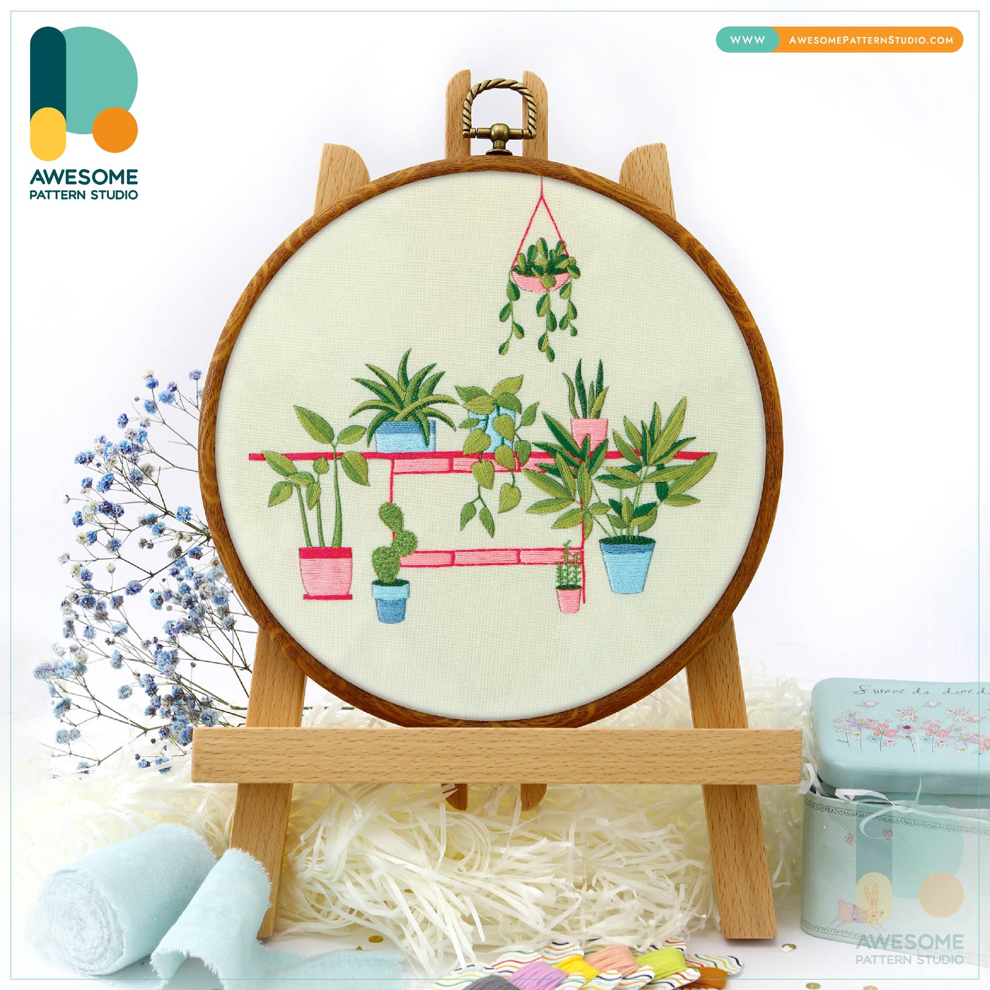 Söta krukväxter broderikit