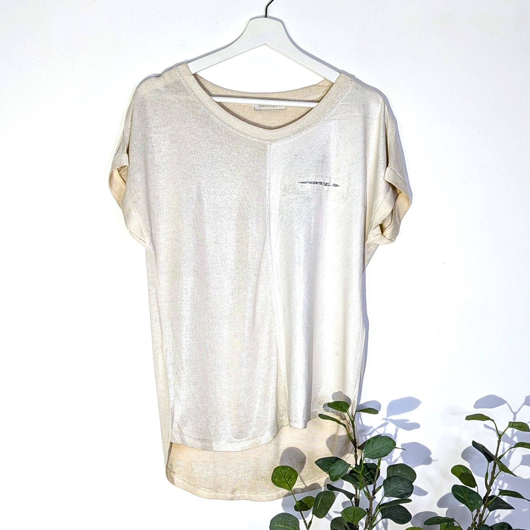 Oohlala präglat motiv långärmad topp med subtil silverglans (M-L)