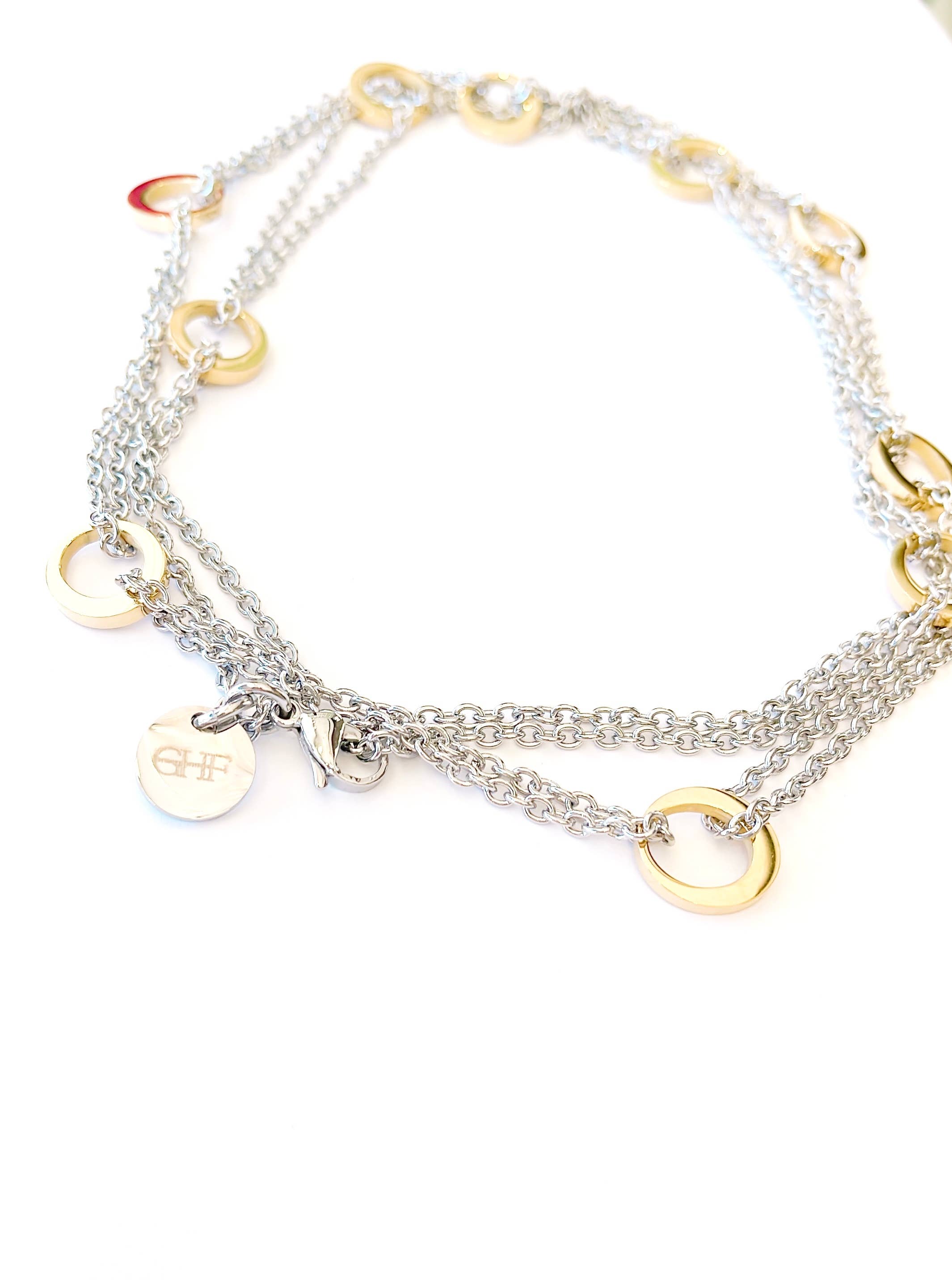 Det perfekta långa halsbandet att bäras med tröjor, blazers och klänningar. Detta långa pärlhalsband har stora och små faux pärlor, guld dubbla anslutande cirklar och guldpläterad färg. Total längd är 30" men kan knäppas för att vara formaterad som en dubbel. 30" Fuskpärlor Guldpläterad Cirkelaccenter