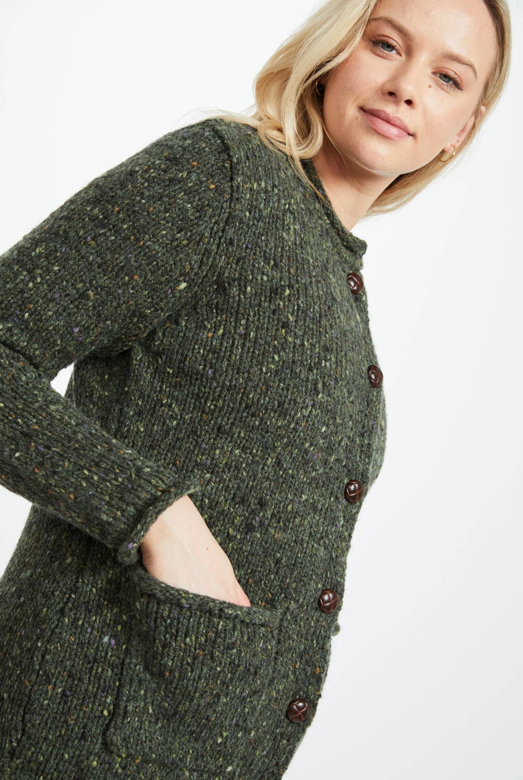 Trendig överdimensionerad enfärgad fårull lång stickad kofta